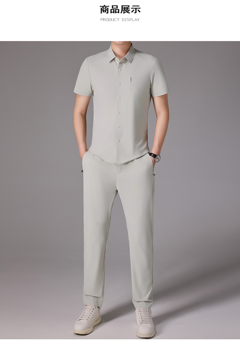 국경 간 아빠 로드 중 새로운 중식 국풍 세트 여름 얇은 스타일 남성 반팔 티셔츠 얼음 실크 없음 흔적 투피스 세트