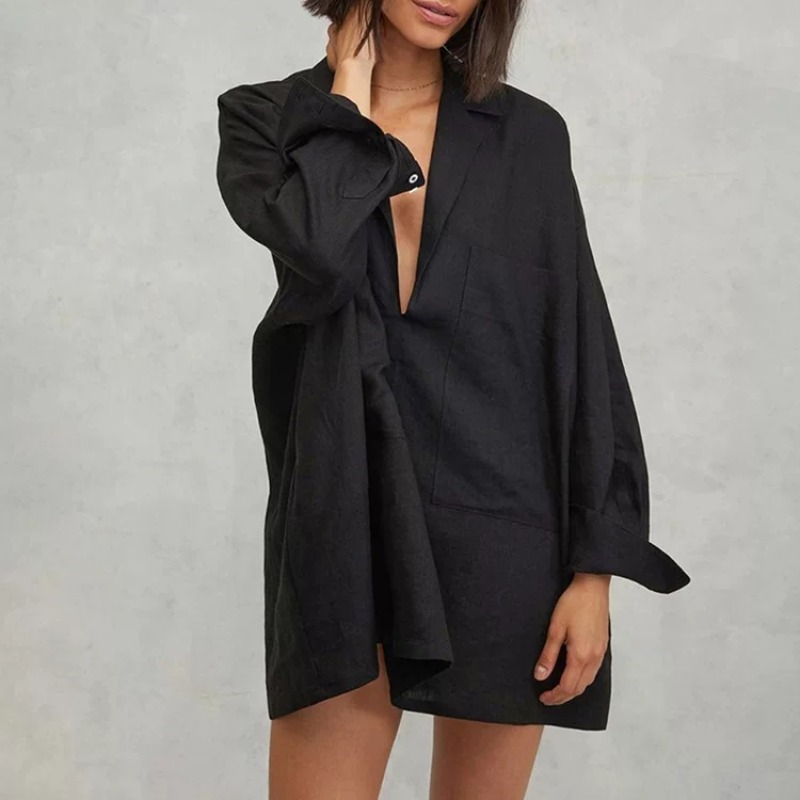 여름 드레스 새로운 빅 사이즈 워시 물 아마 루즈핏 셔츠 드레스 세련된 작은 대중 디자인 스타일 태양 보호 셔츠