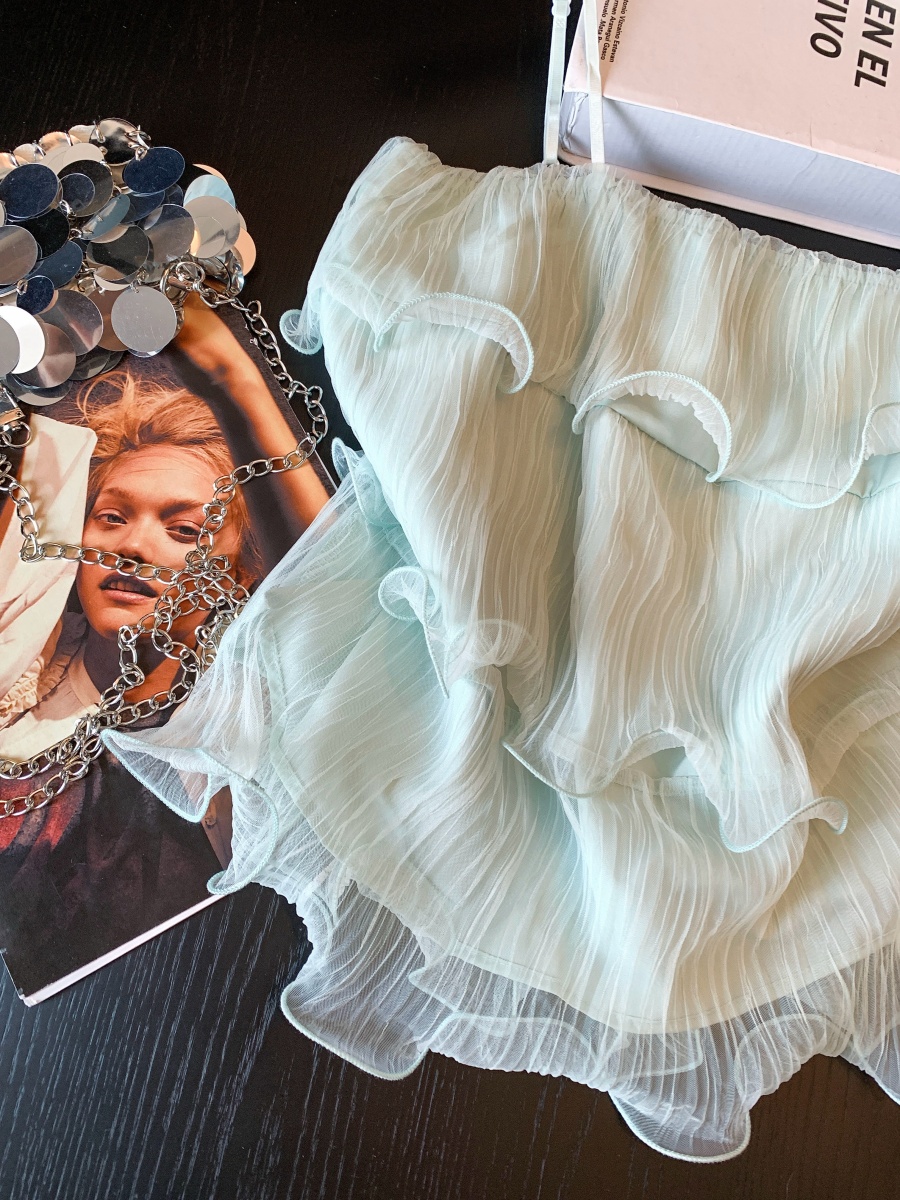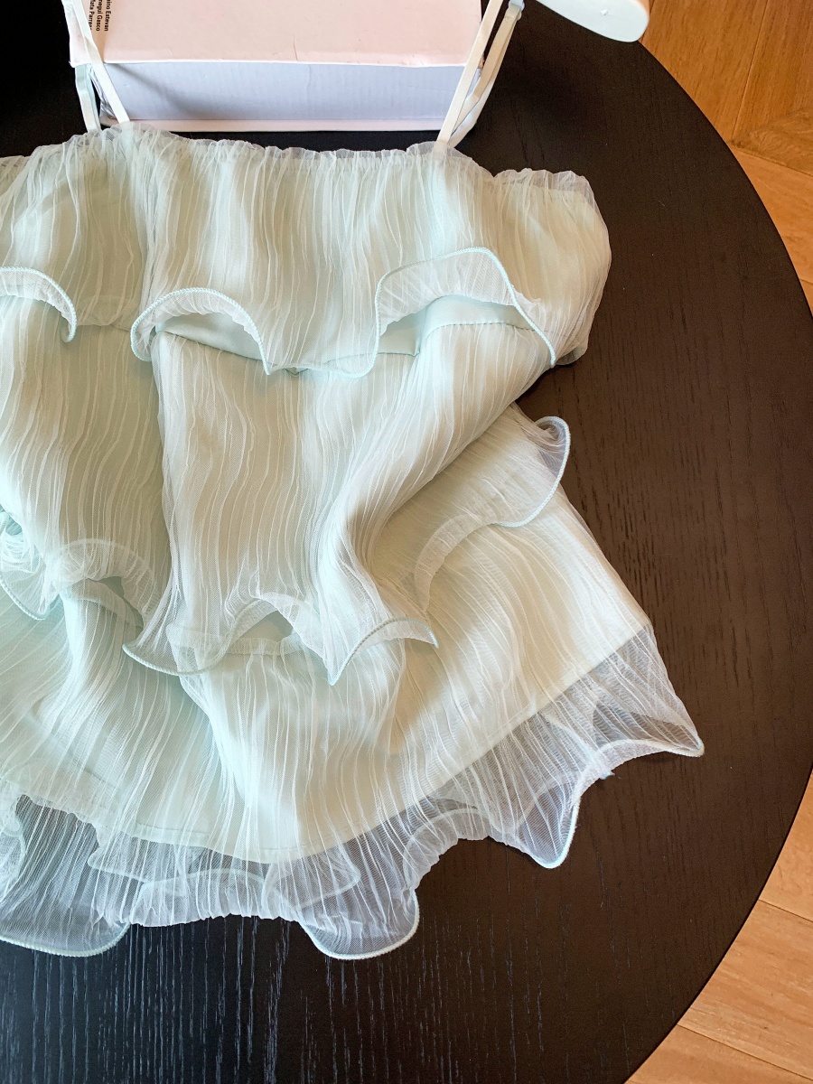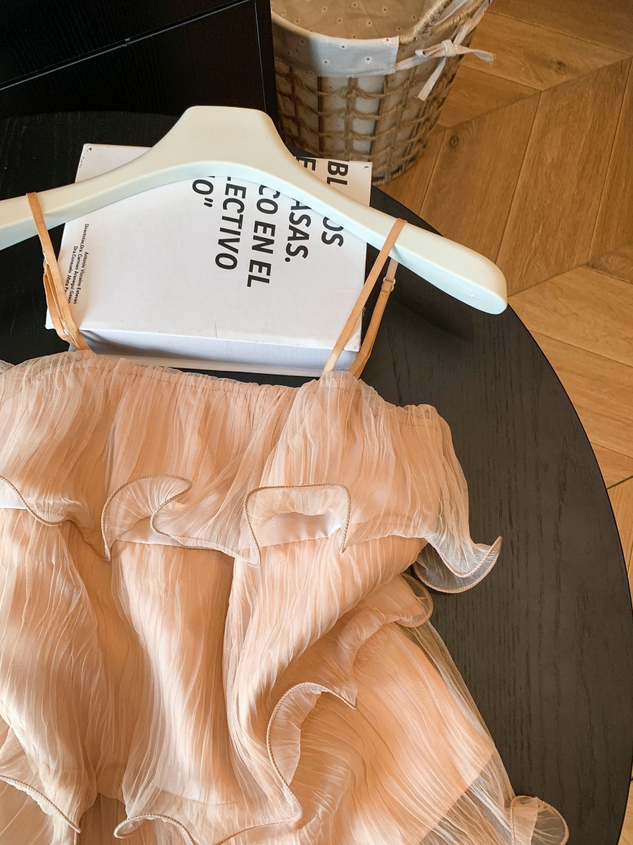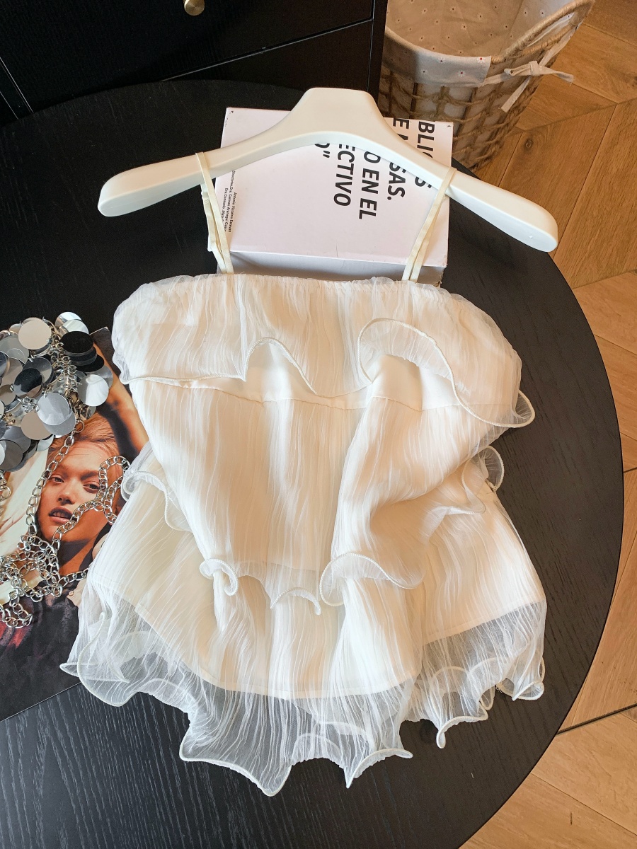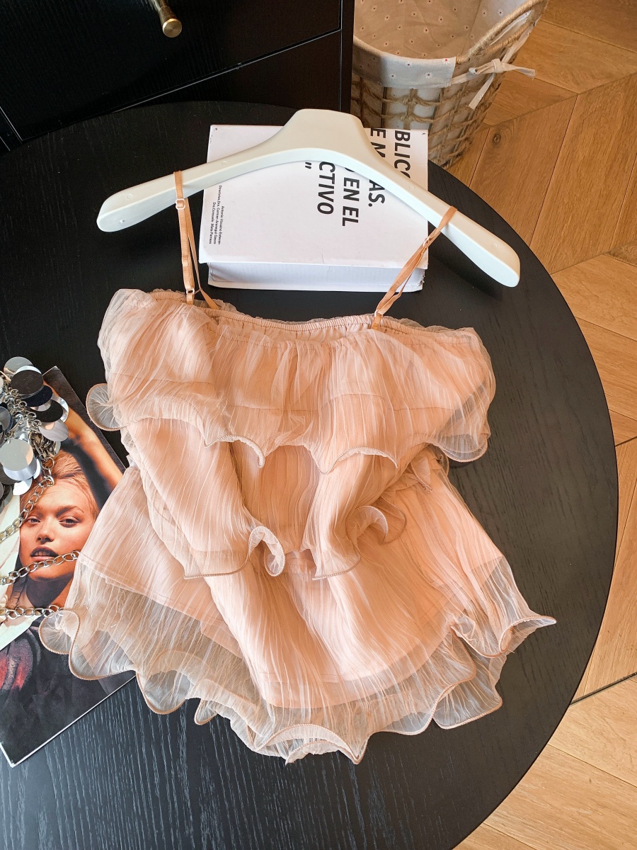 실사 프랑스식 부드러운 바람 슬립 여성 여름 새로운 다중 레이어 프릴 쉬폰 조끼 Chic 외출용 민소매 맨위