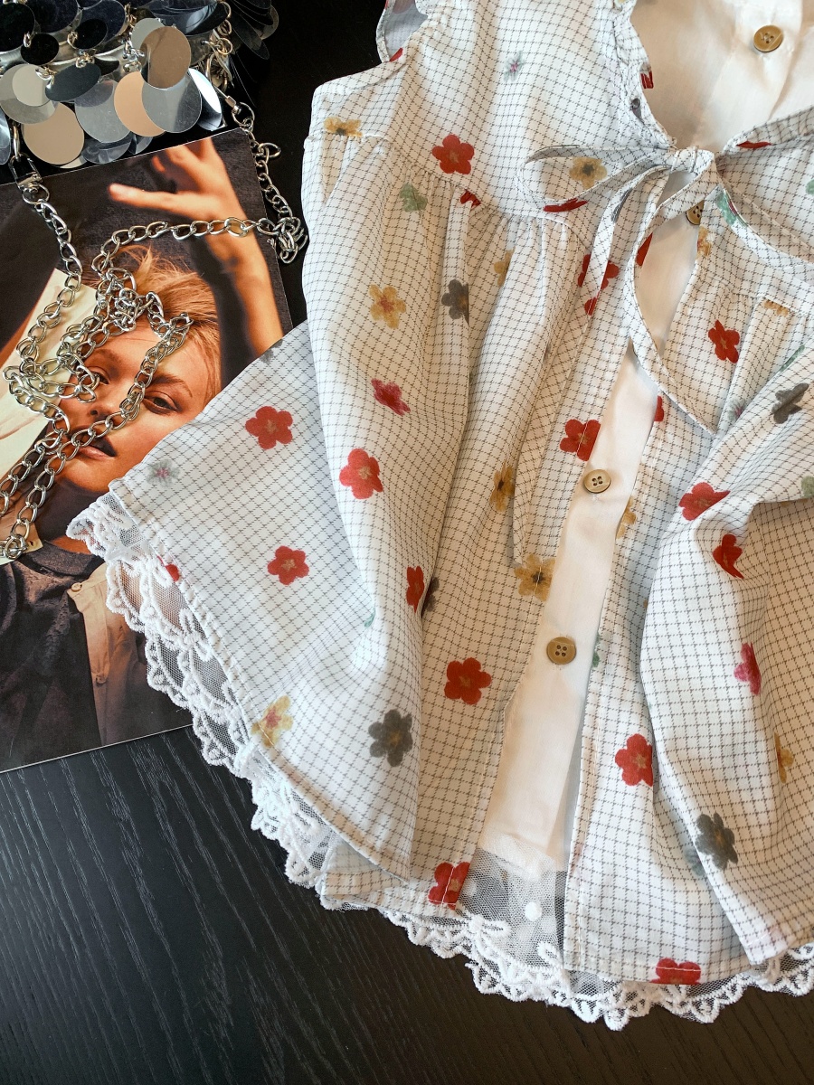 3931 문예 여성 의류 센 부서 주름 맨위 여성 레트로 인형 셔츠 일본식 꽃무늬 셔츠 달콤함 귀여운 루즈핏