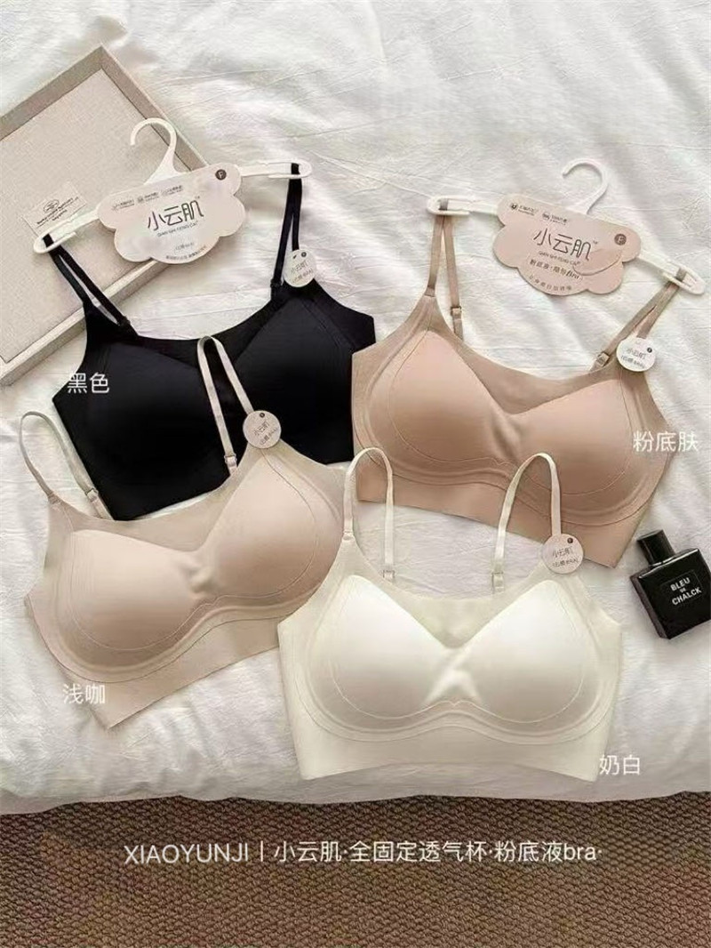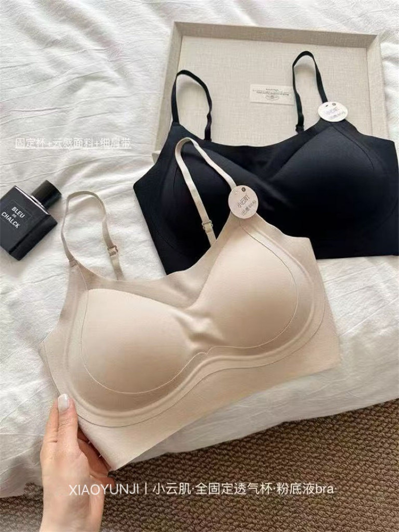 작은 구름 근육 없음 흔적 얼음 실크 전체 고정 통기성 컵 와이드 어깨끈 작은 에어컨 파운데이션 bra 아름다움 뒤로 조끼