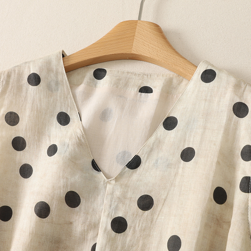실사 레트로 낭만주의 느긋한 느슨함 빅 사이즈 V넥 도트 무늬 민소매 드레스