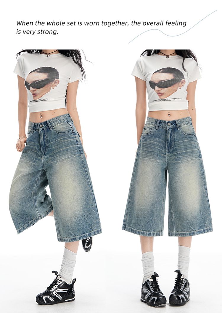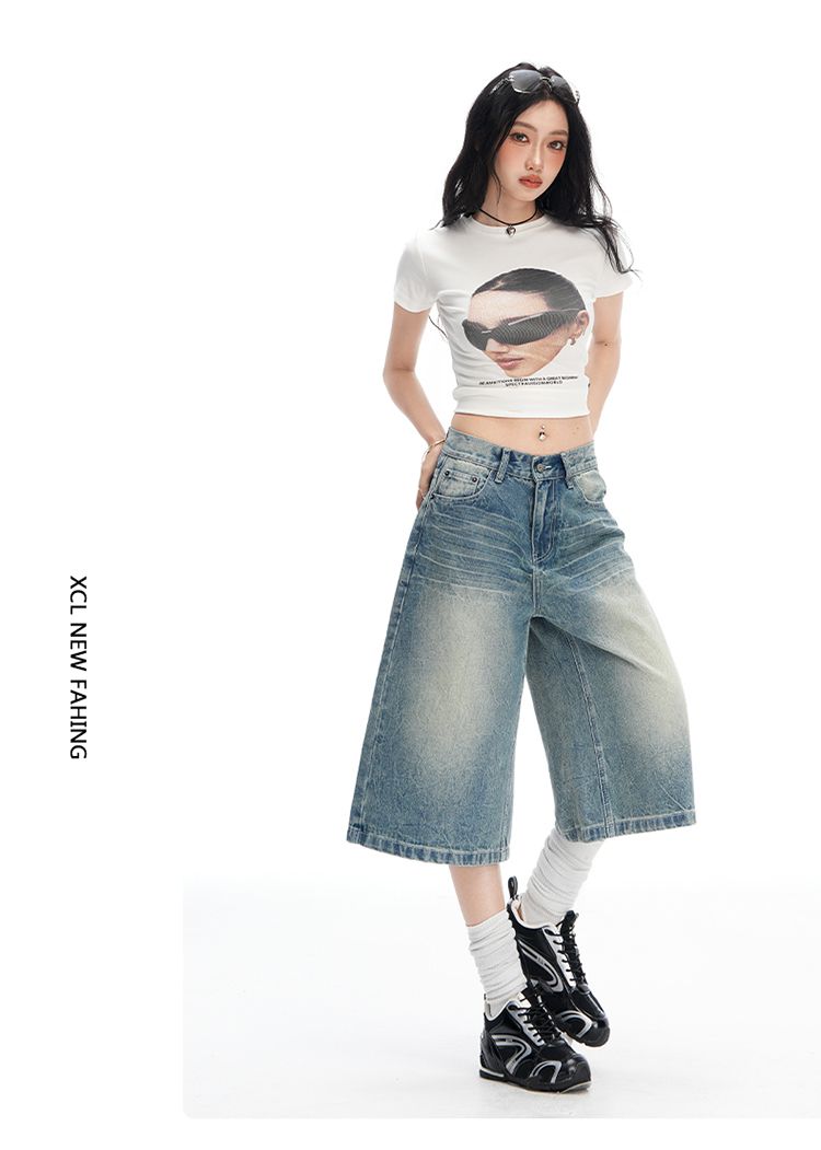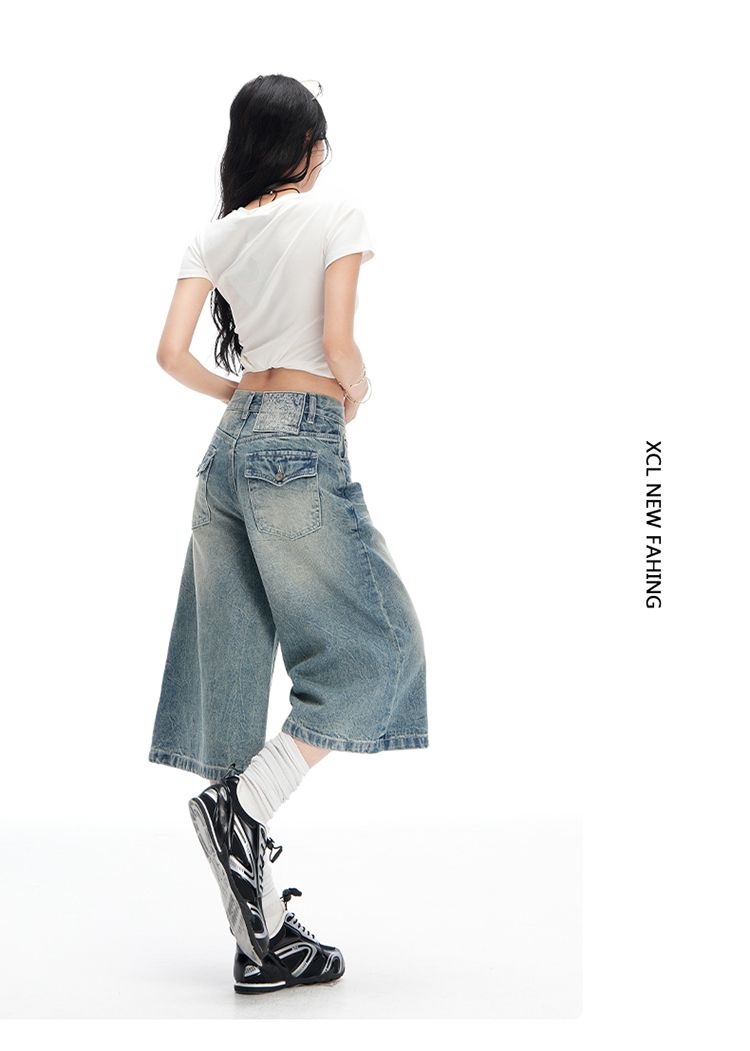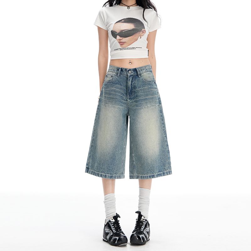 아메리칸 레트로 7 점 데님 반바지 여성 2026 새로운 여름 작은 키 슬림해 보이는 루즈핏 스트레이트 넓은 다리 바지