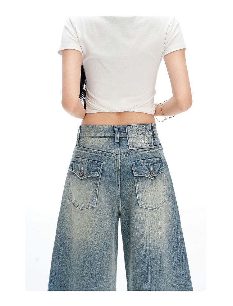 2026 아메리칸 레트로 마 오래된 청바지 여성 봄 여름 새로운 하이웨이스트 도루 센스 다용도 넓은 다리 바닥 청소 바지