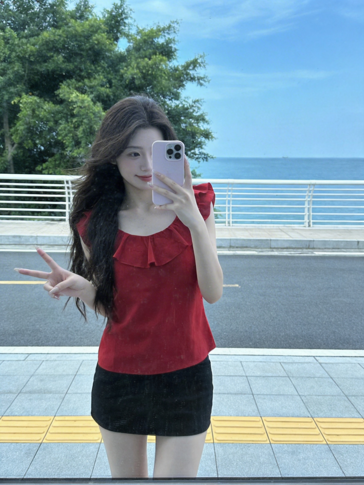 프랑스식 숙녀 바람 Feifei 소매 u 칼라 반팔 티셔츠 2026 년 여름 새로운 부드러운 슈퍼 잘 생긴 Chic 맨위