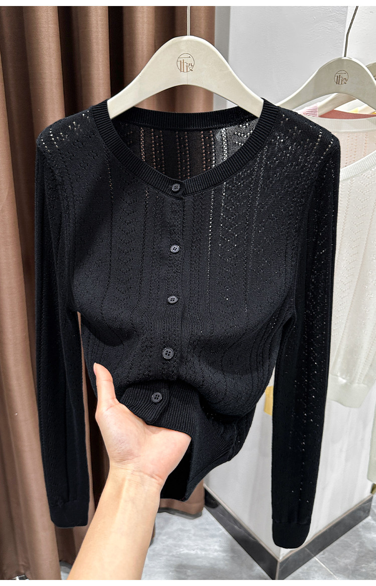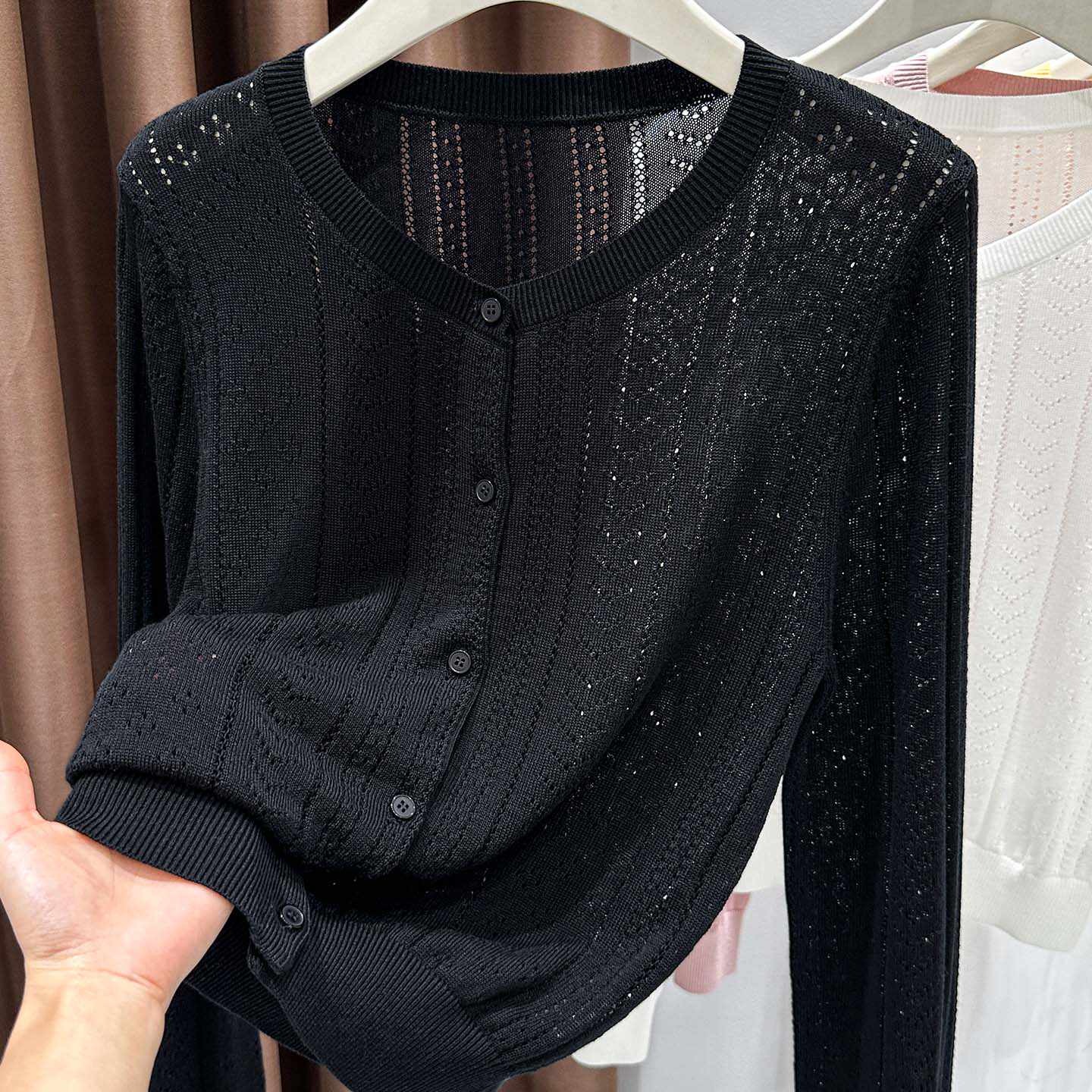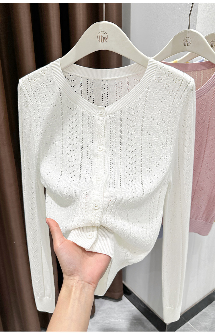 핑크색 홀로우 아웃 니트 오픈 가디건 여성 봄 새로운 긴팔 단추 자외선 차단 블라우스 몸매 가꾸기 슬림해 보이는 라이 경기 서울 맨위