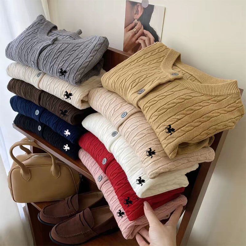 가을 겨울 새로운 꽈배기 오픈 가디건 다용도 루즈핏 날다 말 자수 긴팔 니트 스웨터 외출용 외국 가스 부드러운 찹쌀 스웨터 여자