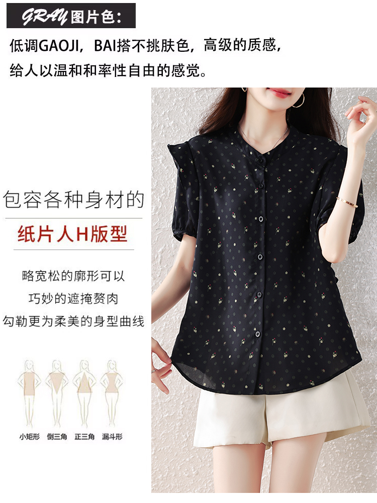 실사 꽃무늬 여성 셔츠 2026 여름 새로운 품격 스탠드 칼라 반팔 맨위 빅 사이즈 루즈핏 슬림해 보이는 작은 셔츠