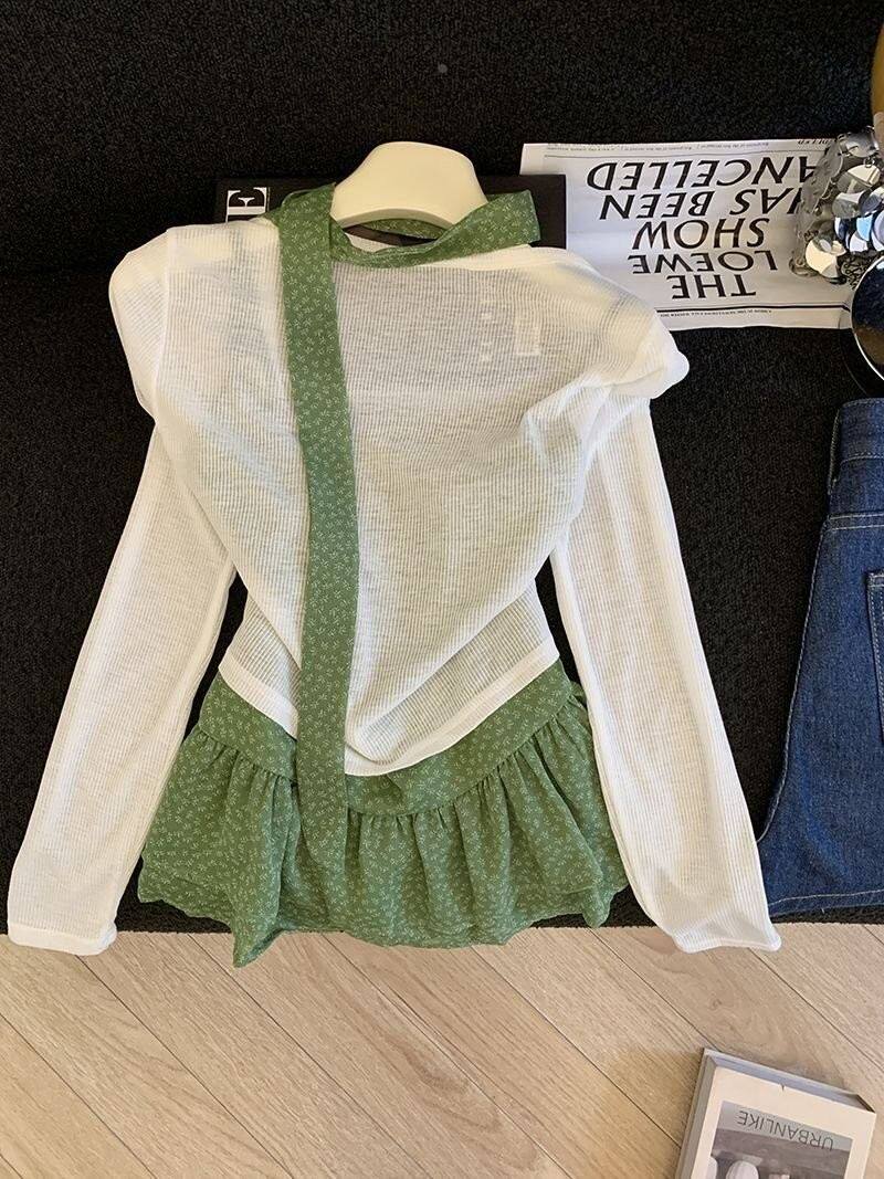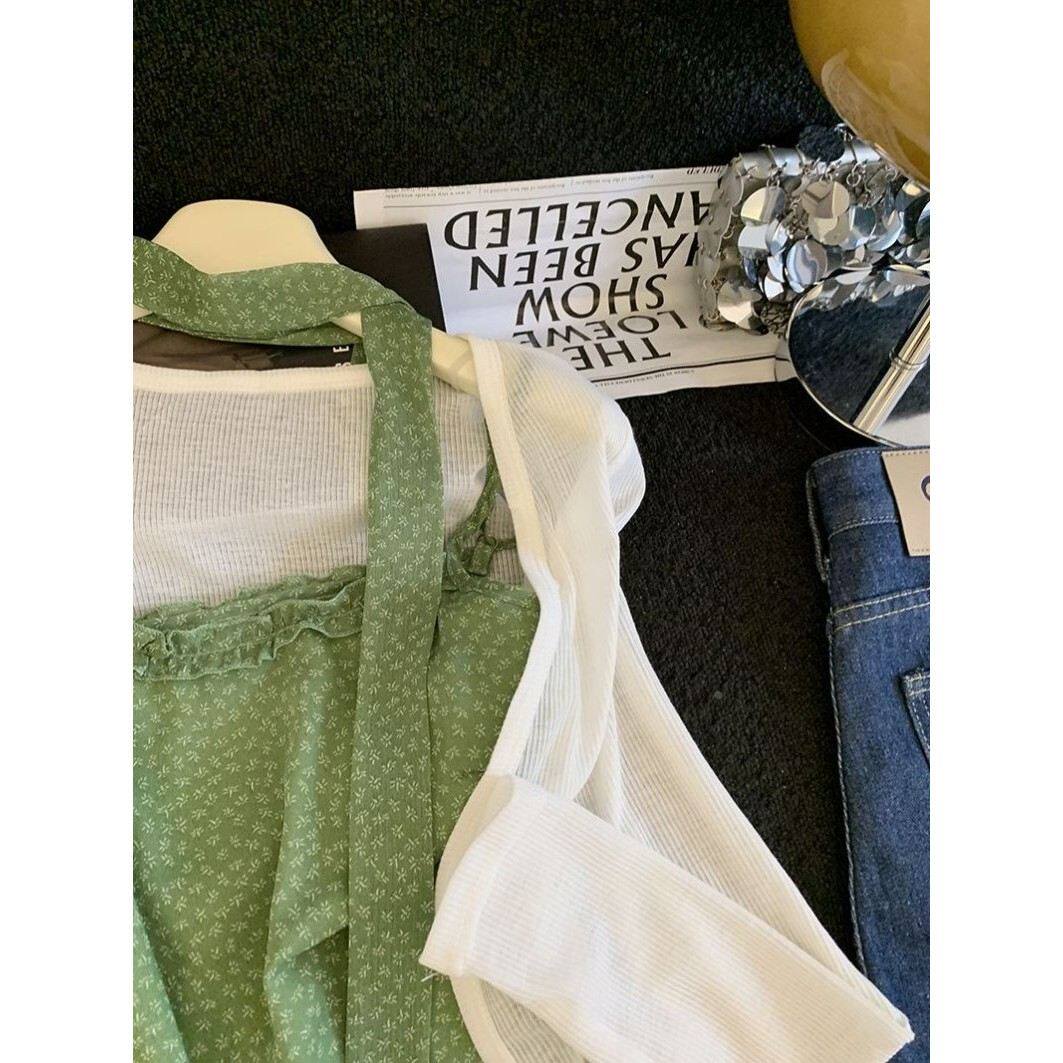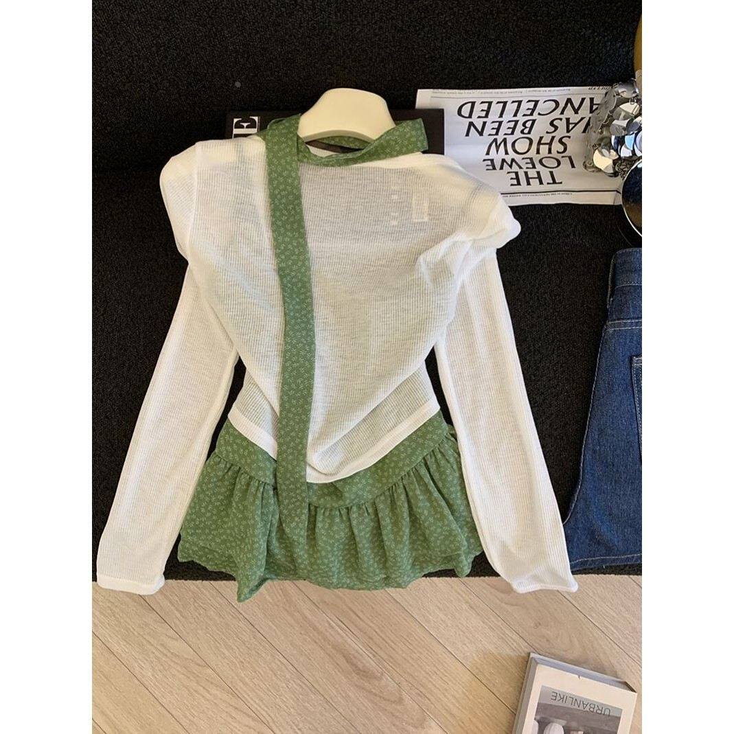 섹시함 핫걸 니트 기본 셔츠 여성 긴 소매 맨위 봄 얇은 스타일 몸매 가꾸기 페이크 레이어드 행침 목 캐미솔