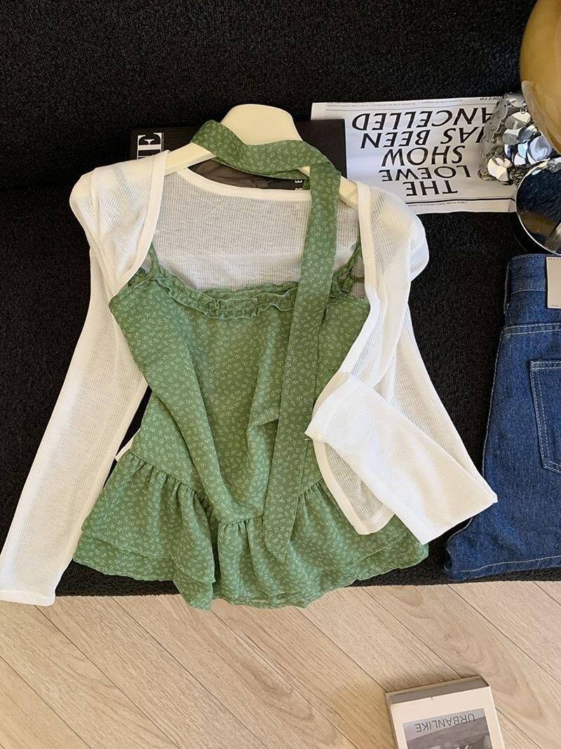 한 부서 패션 세트 2026 여름 자외선 차단 오픈 가디건 프릴 꽃무늬 슬립 투피스 세트 작은 청신 맨위