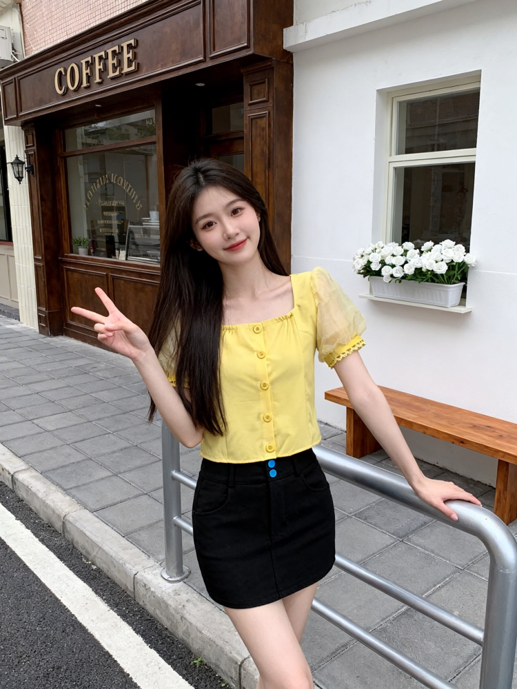 한 부서 순수한 욕망 바람 광장 칼라 단추 반팔 티셔츠 여성 2026 여름 새로운 품격 세련된 다용도 쇼트 스타일 맨위