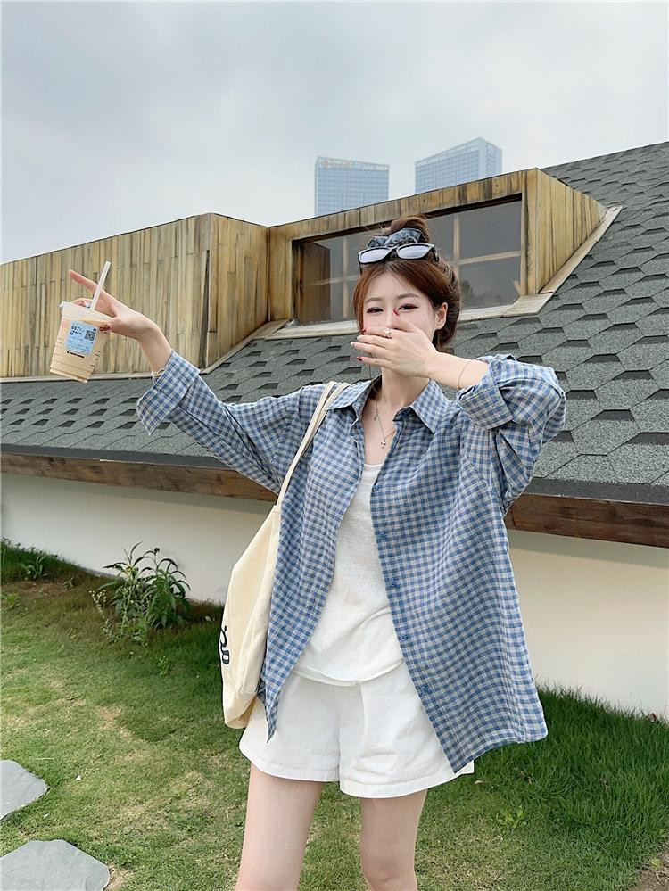 체크무늬 자외선 차단 셔츠 2026 달콤함 루즈핏 셔츠 긴팔 캐주얼 맨위 보내기 헤드 플라워