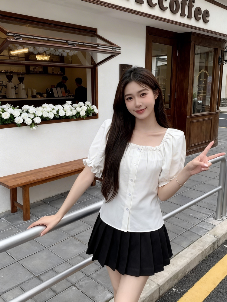 프랑스식 숙녀 바람 Feifei 소매 u 칼라 반팔 티셔츠 2026 년 여름 새로운 부드러운 슈퍼 잘 생긴 Chic 맨위