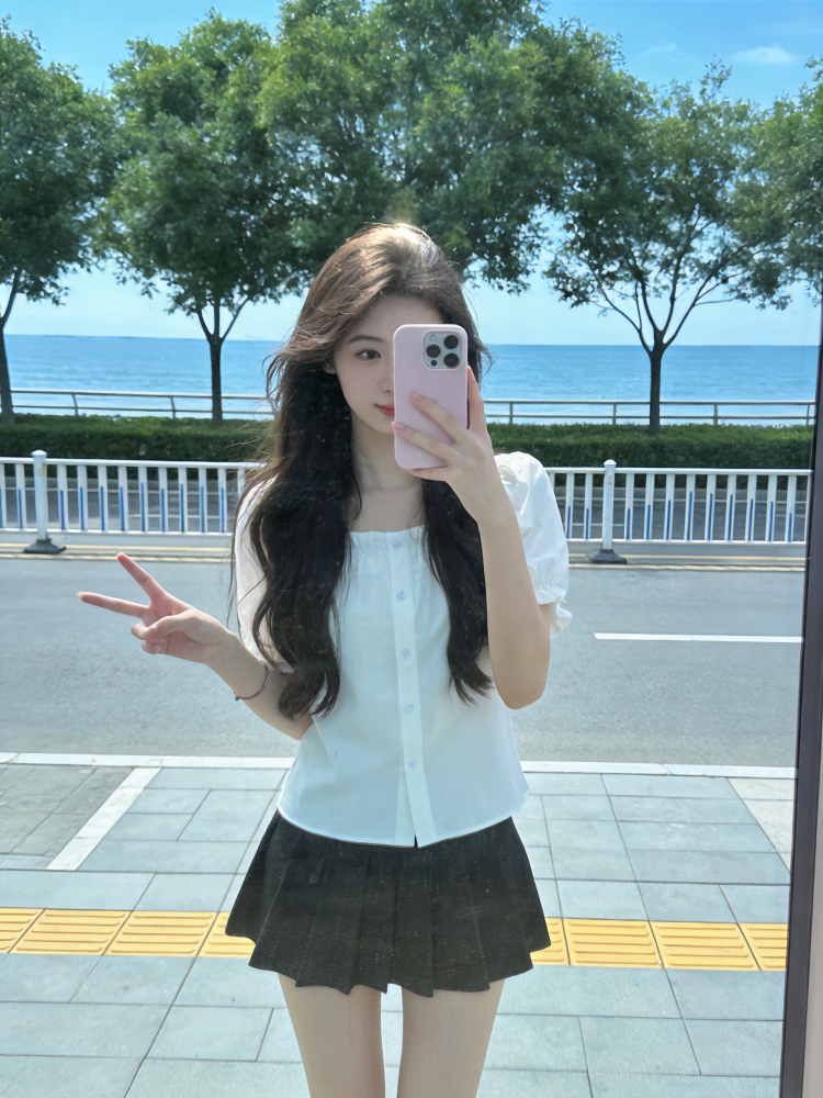 열세 개 2026 봄 여름 새로운 서클 분말 레트로 다용도 달콤한 자매 행침 목 프릴 퍼프 작은 셔츠 트렌디