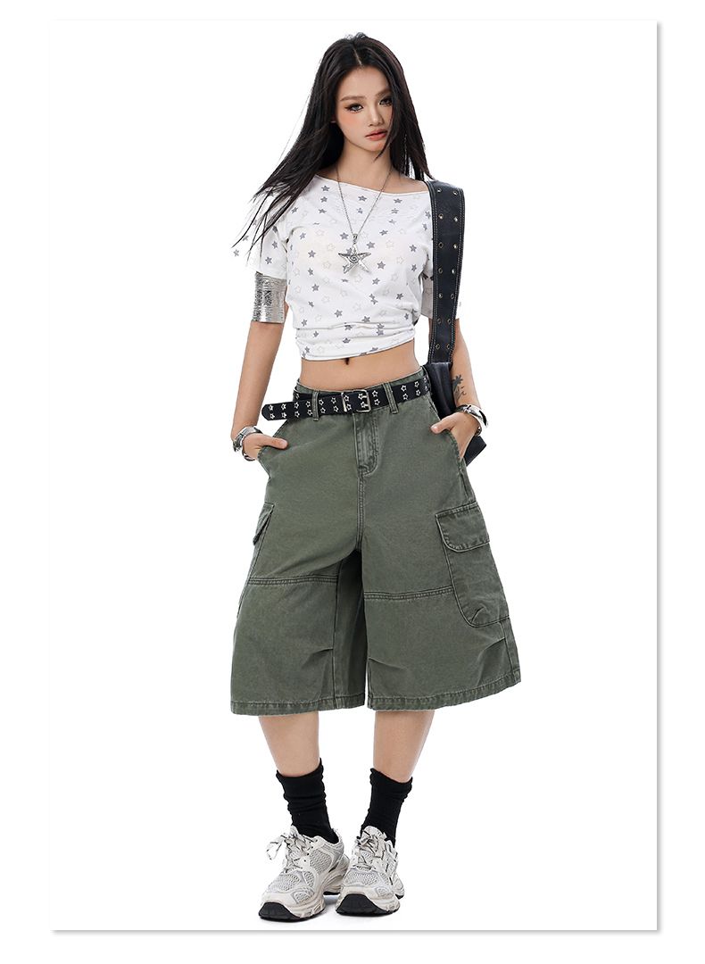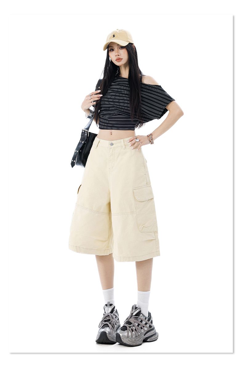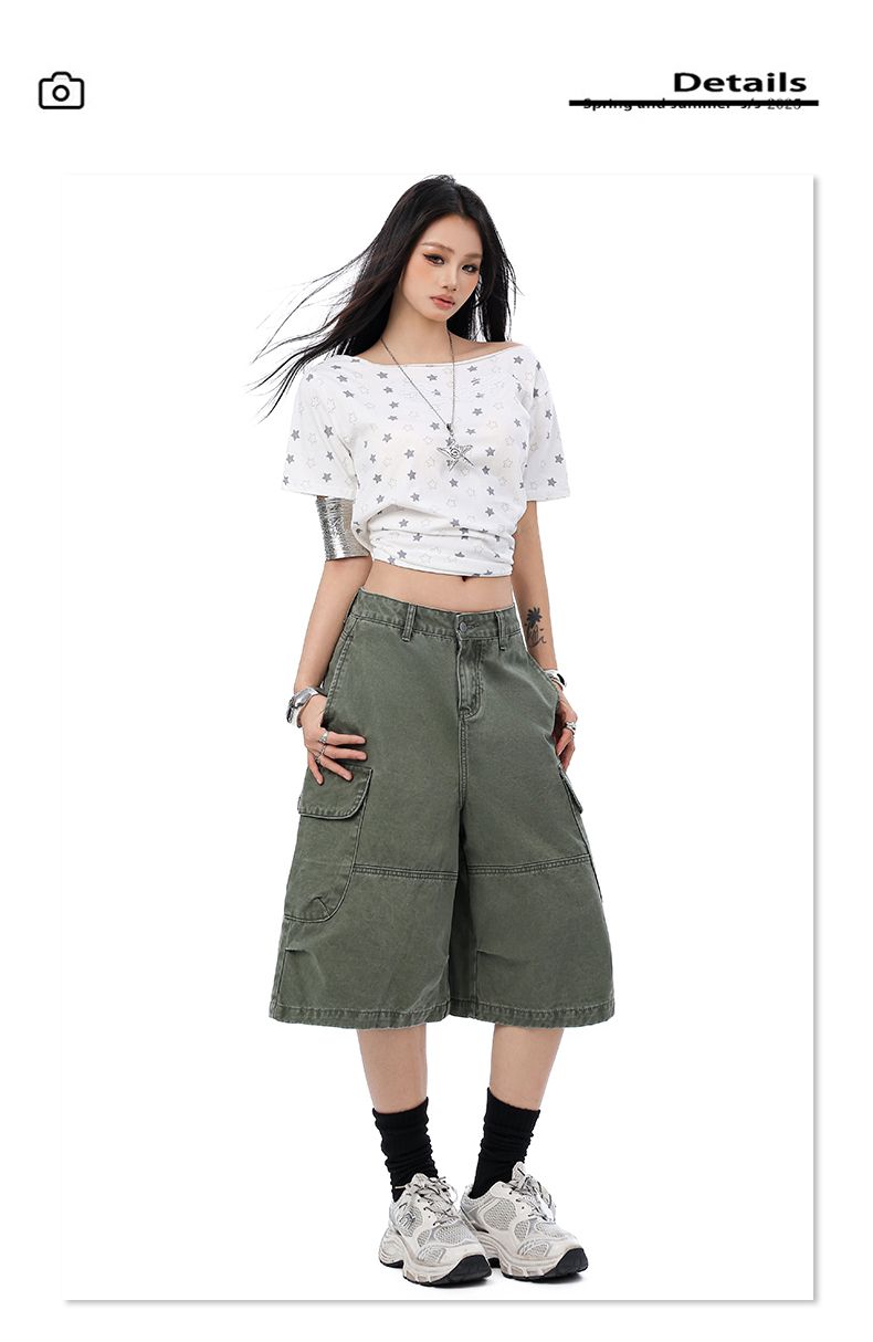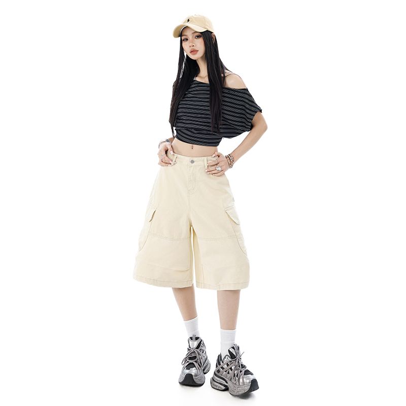 실사 2026 여름 새로운 조수 브랜드 아메리칸 청바지 반바지 남자 다용도 루즈핏 높음 거리 패치워크 오부 바지 남자