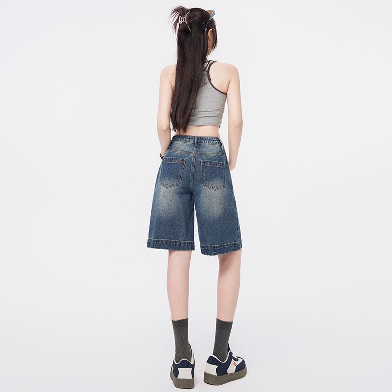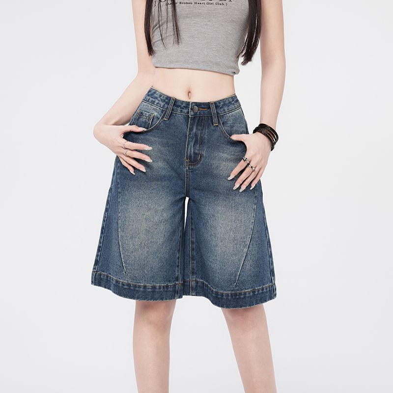 아메리칸 레트로 7 점 데님 반바지 여성 2026 새로운 여름 작은 키 슬림해 보이는 루즈핏 스트레이트 넓은 다리 바지