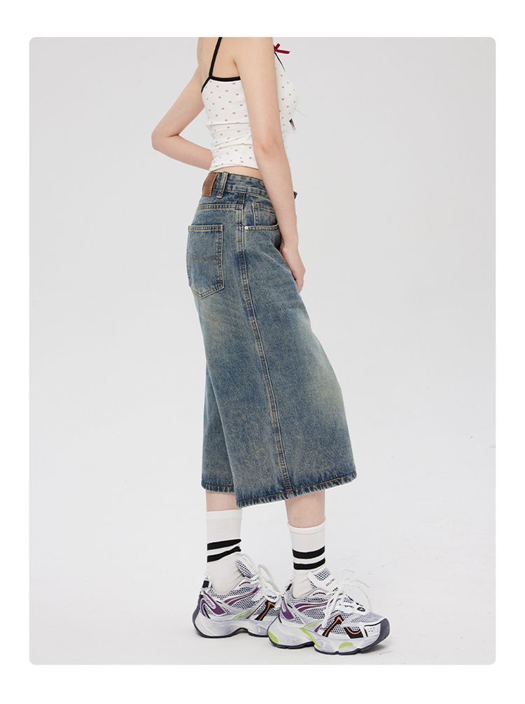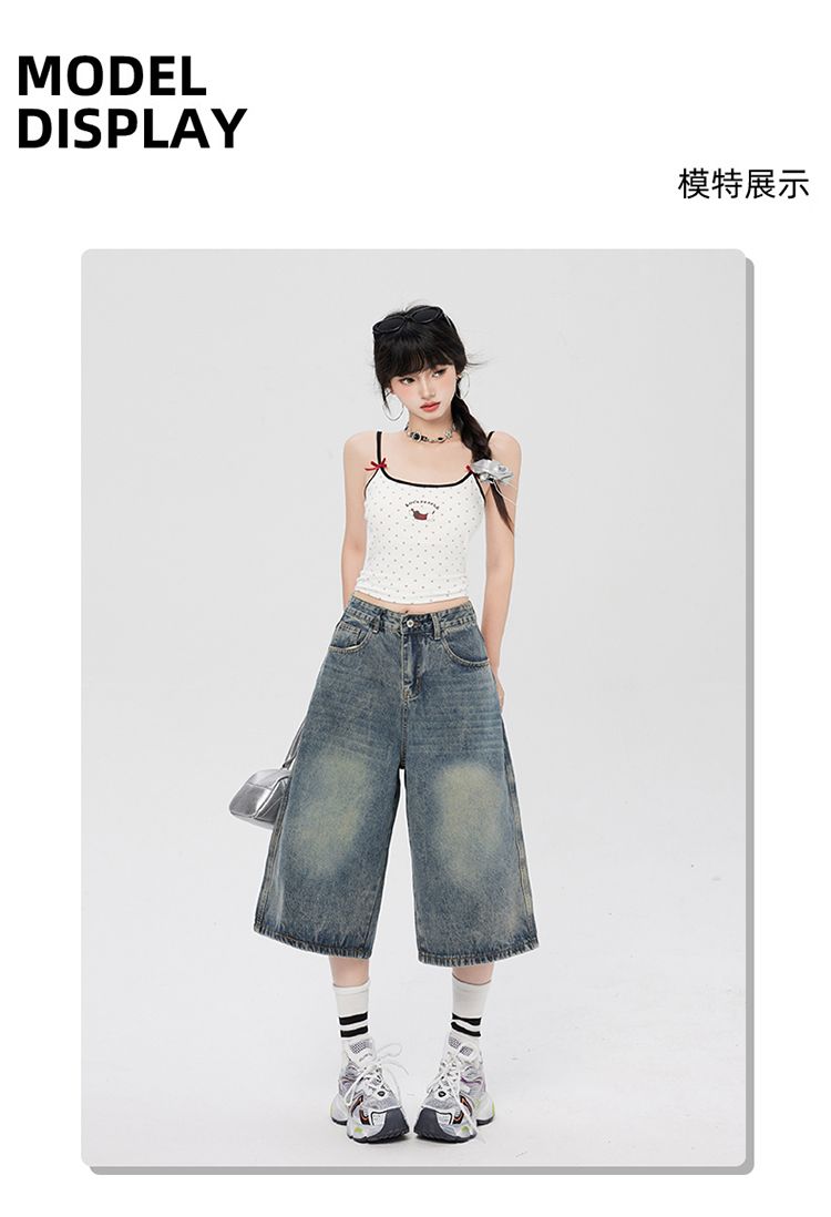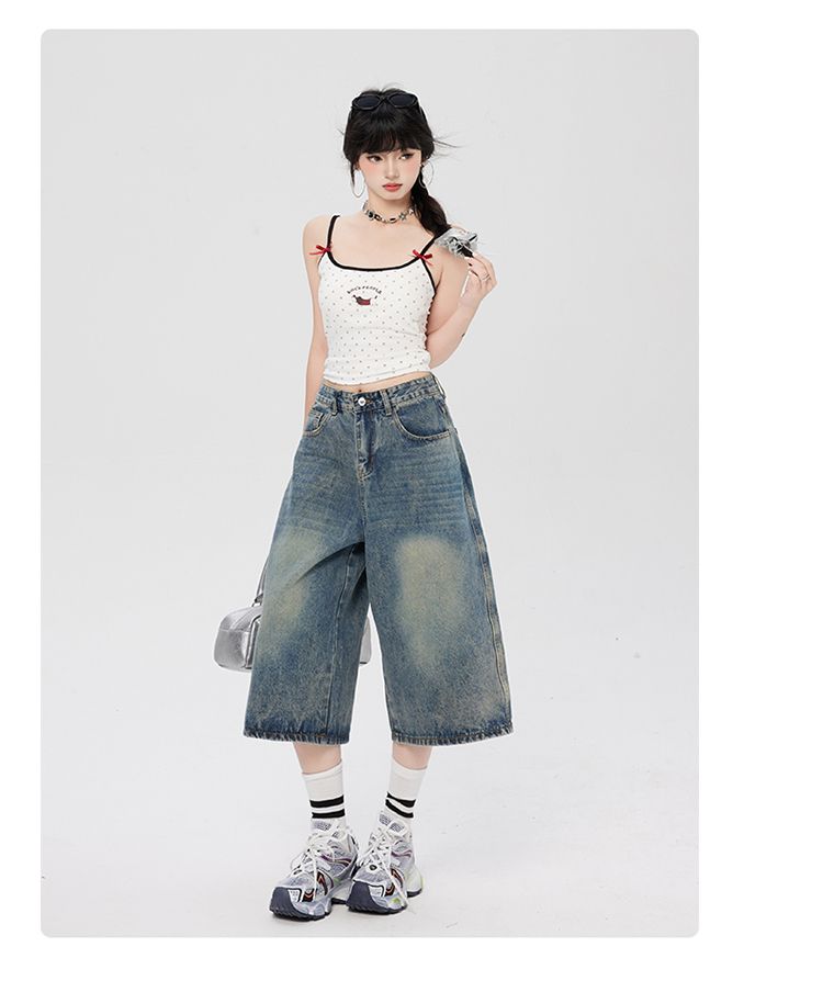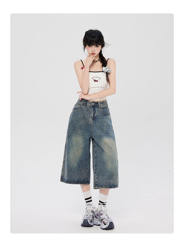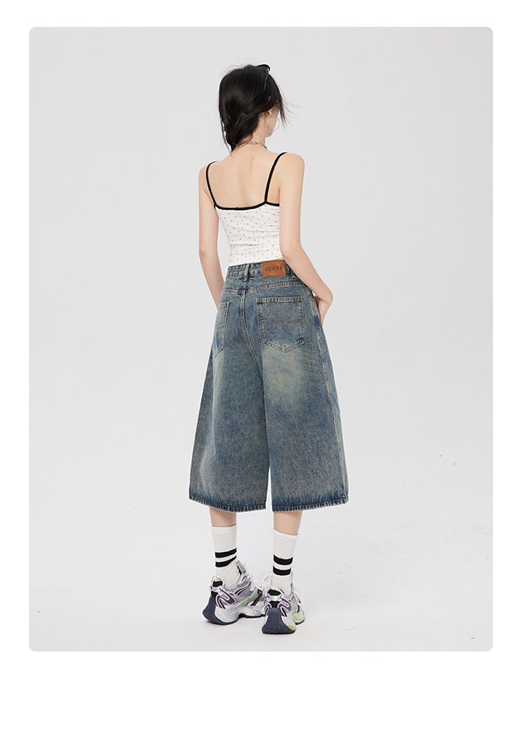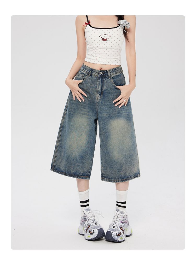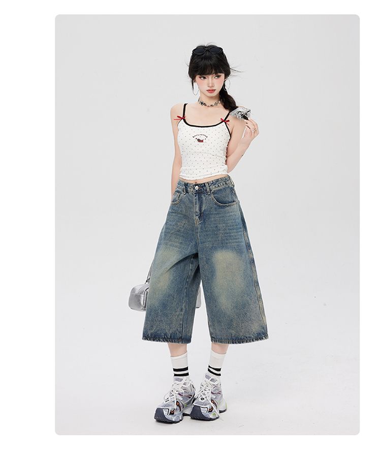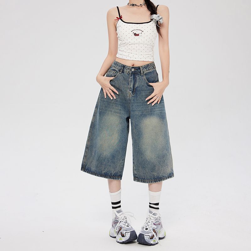 아메리칸 레트로 7 점 데님 반바지 여성 2026 새로운 여름 작은 키 슬림해 보이는 루즈핏 스트레이트 넓은 다리 바지