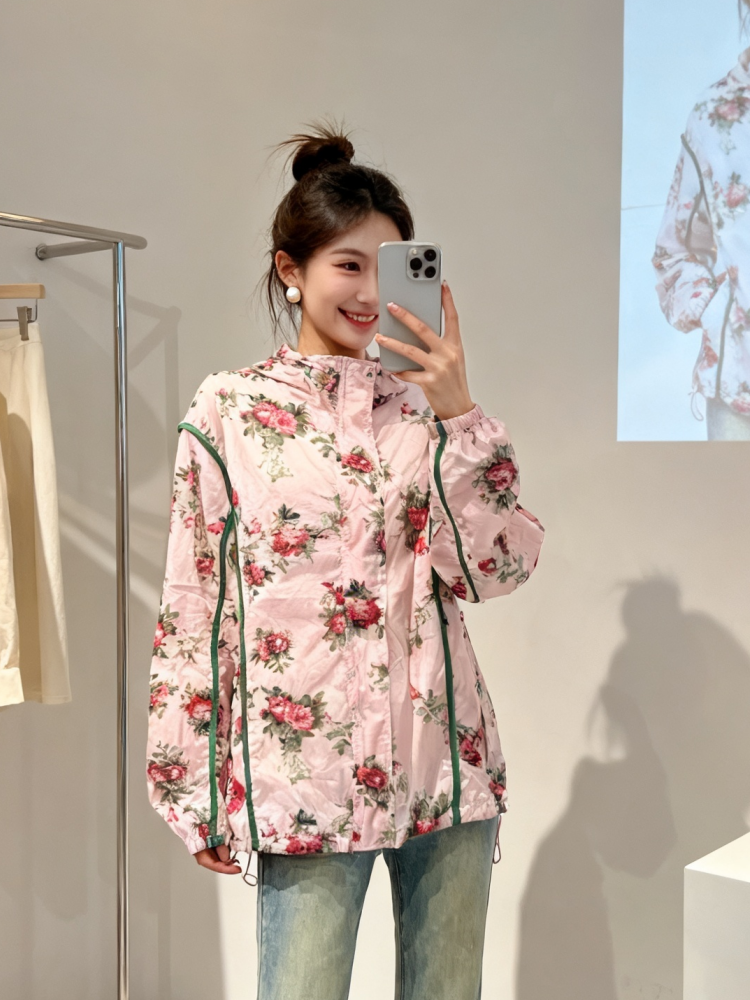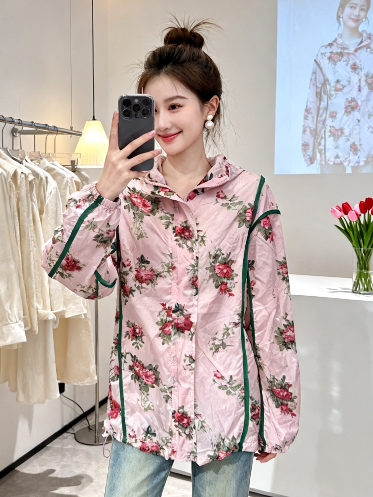 고급 디자인 센스 꽃 프린트 자외선 차단 재킷 2026 년 여름 새로운 작은 대중 패션 루즈핏 슬림해 보이는 맨위
