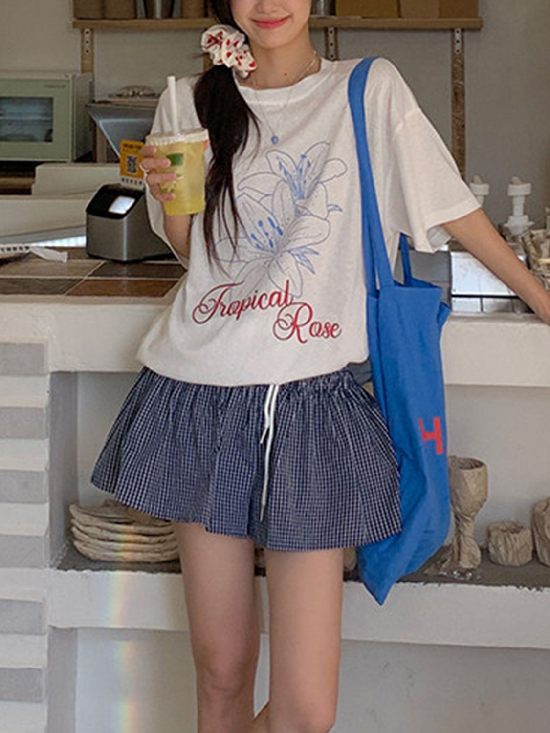 빅 사이즈 여성 의류 학원 스타일 여름 분위기 센스 반팔 셔츠 미니 스커트