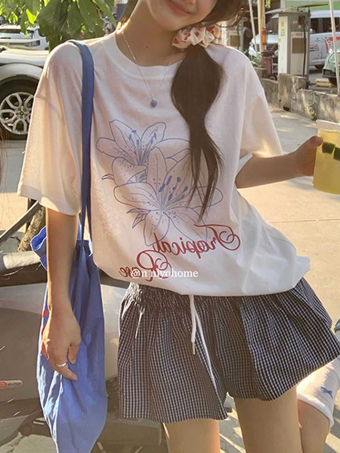 경관 그림 21 순면 210 그램 반팔 티셔츠 여성 루즈핏 빅 사이즈 프린트