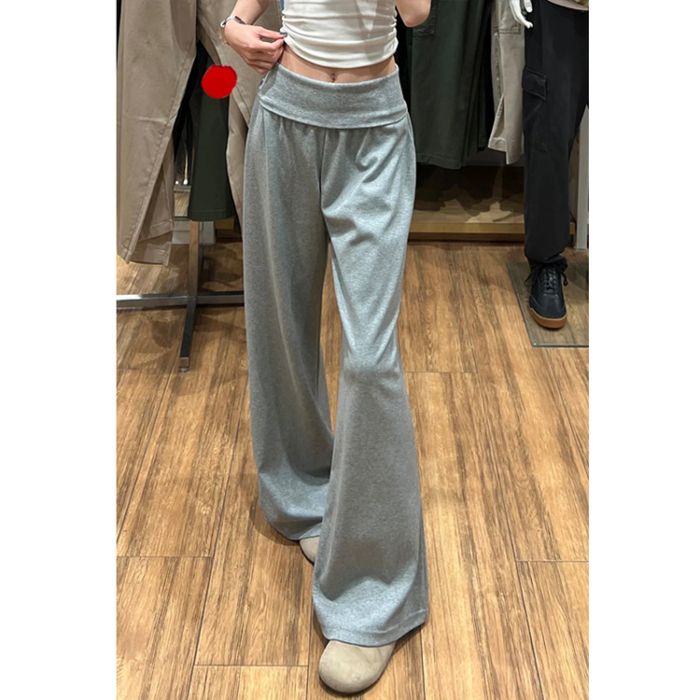 핫걸 디자인 센스 페이크 레이어드 방귀 커튼 캐주얼 바지 여성 의류 여름 다용도 도루 센스 신축성 부츠컷 바지 바닥 청소 긴 바지