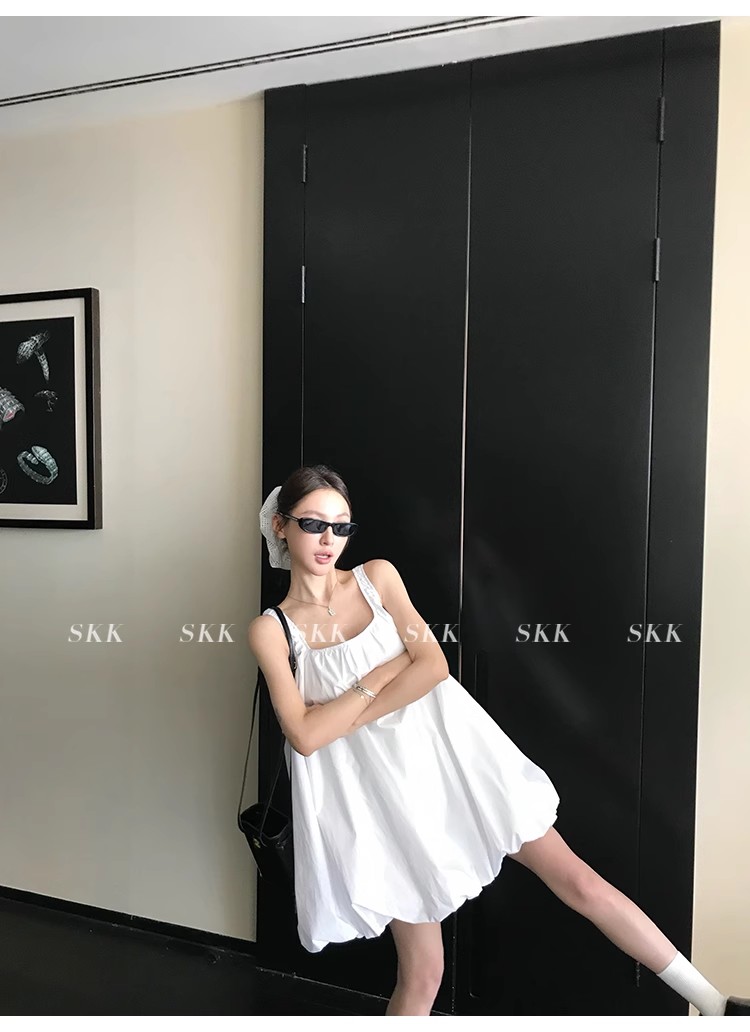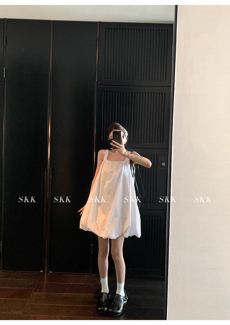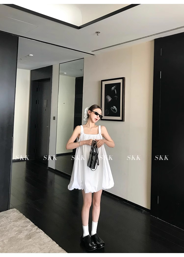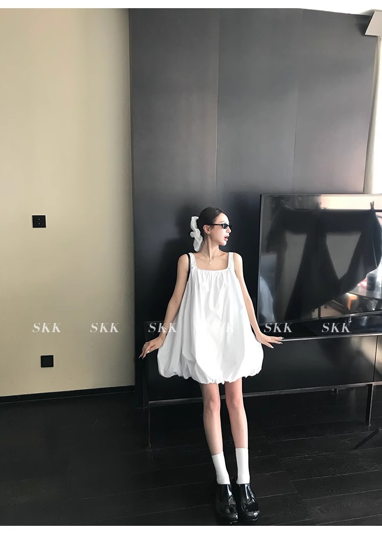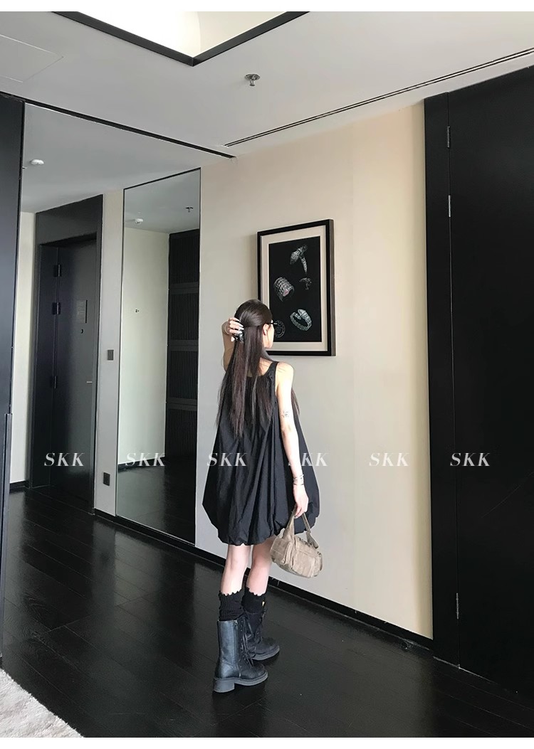 한 부서 스트레이트 조끼 여성 드레스 여름 새로운 루즈핏 슬림해 보이는 품격 작은 심장 기계 백리스 민소매 미니 스커트