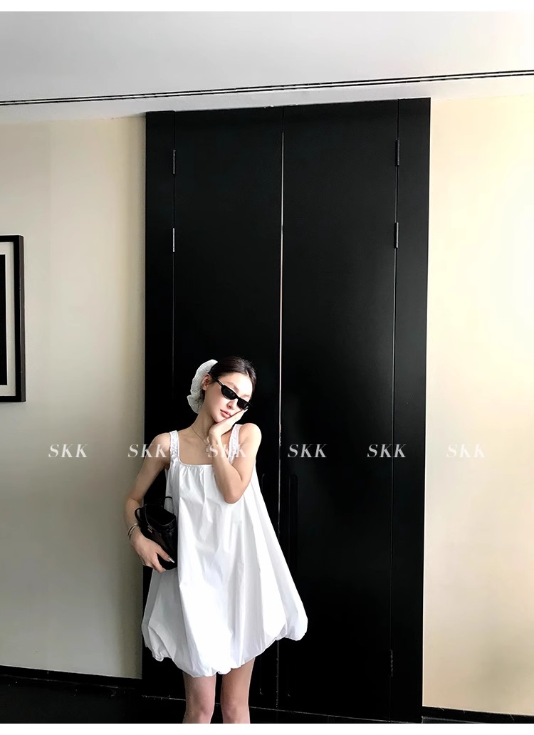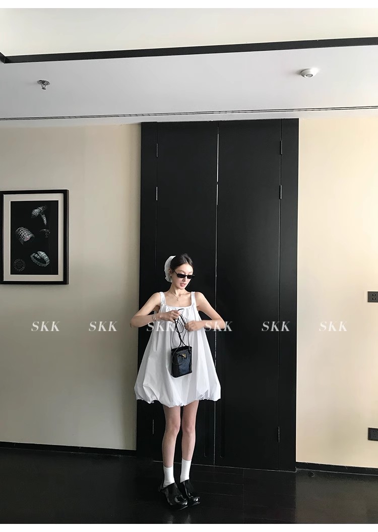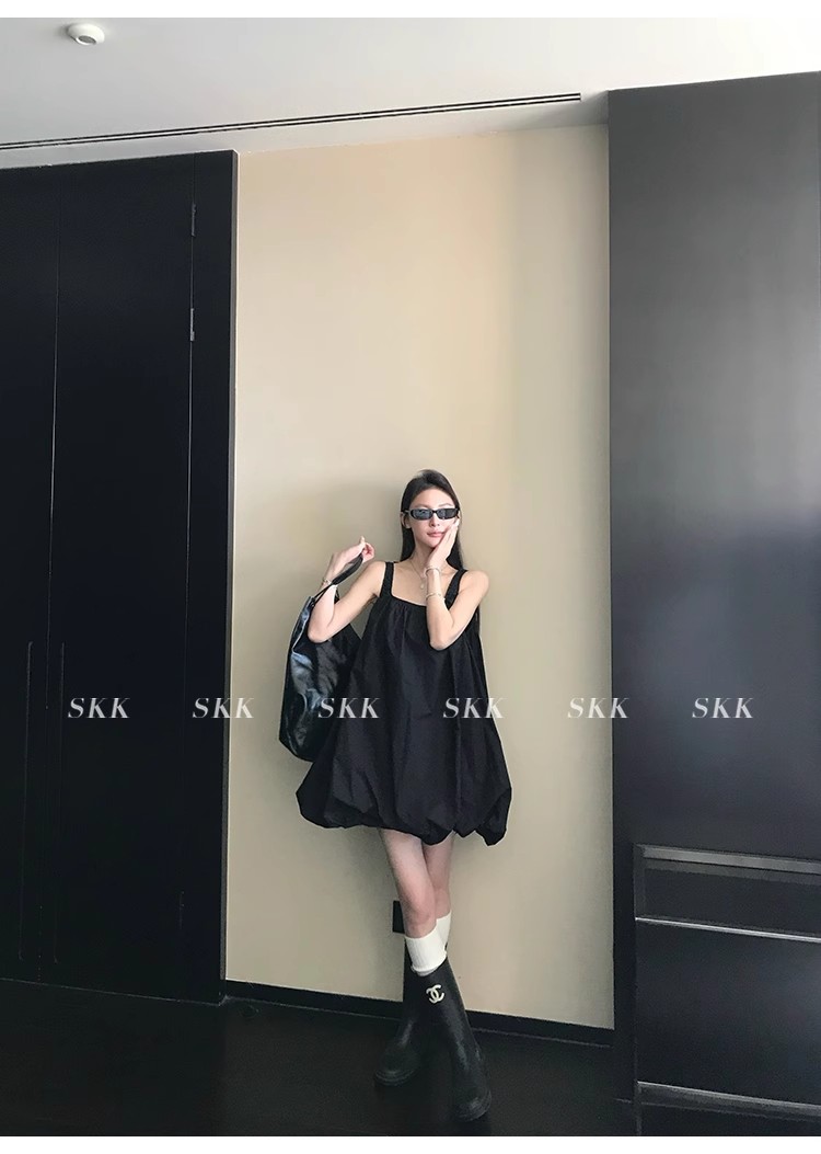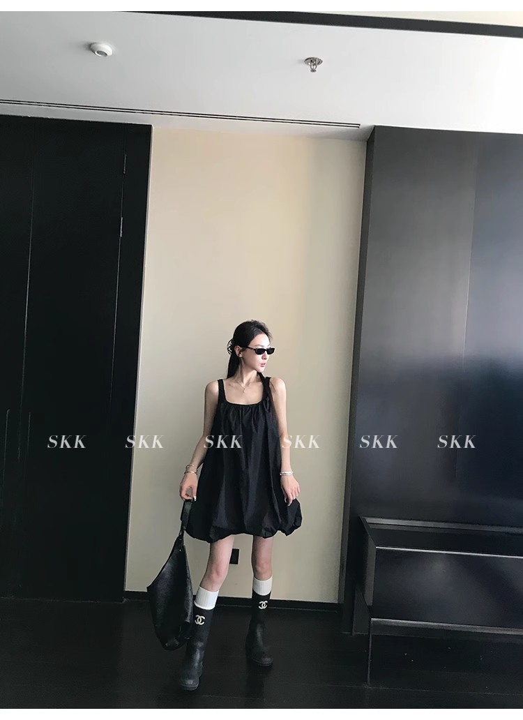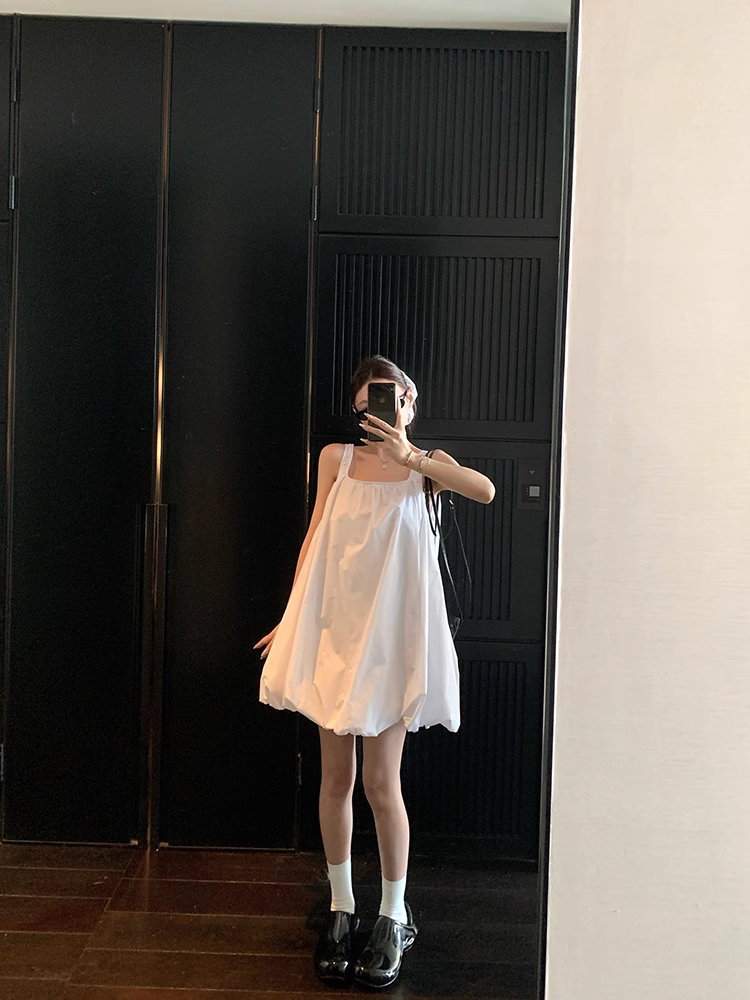 한 부서 스트레이트 조끼 여성 드레스 여름 새로운 루즈핏 슬림해 보이는 품격 작은 심장 기계 백리스 민소매 미니 스커트