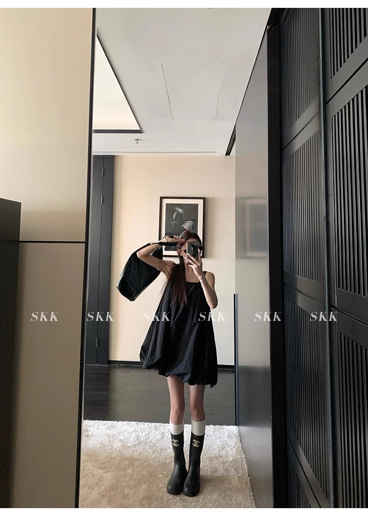 모방 아세트산 민소매 프랑스식 드레스 여름 한국 스타일 출퇴근 작은 검은 드레스 그는 벤 스타일 품격 슬림해 보이는 조끼 스커트