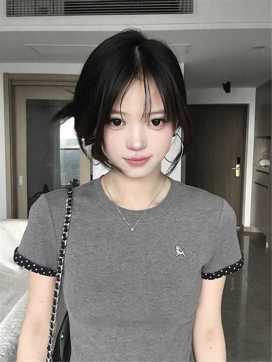 260 그램 사람들 면 프랑스식 핫걸 품격 V넥 POLO 셔츠 여성 여름 허리 수축 슬림해 보이는 반팔 긍정적 인 어깨 쇼트 스타일 t