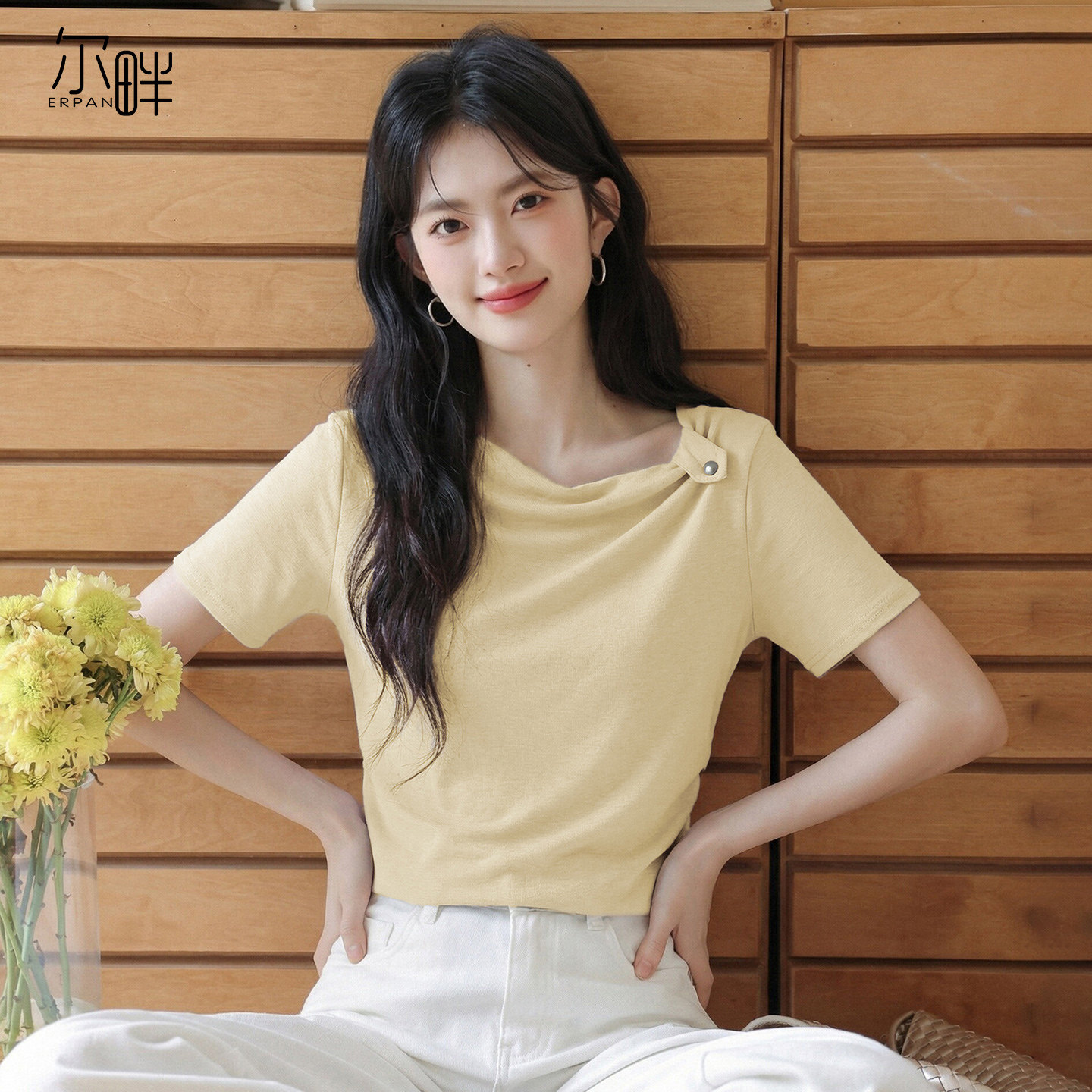 1 1 인 면 와 사고 방식 260g 빅 사이즈 여름 흔들다 칼라 반팔 티셔츠 여성 2026 새로운 주름 허리 수축 맨위
