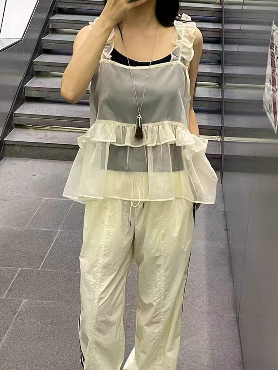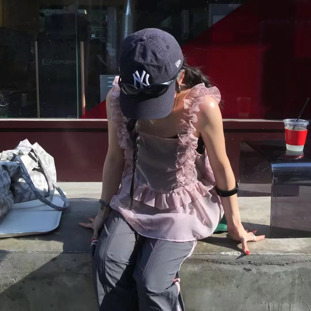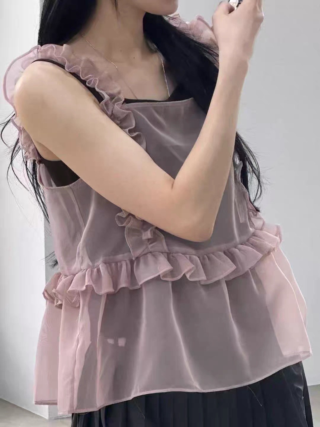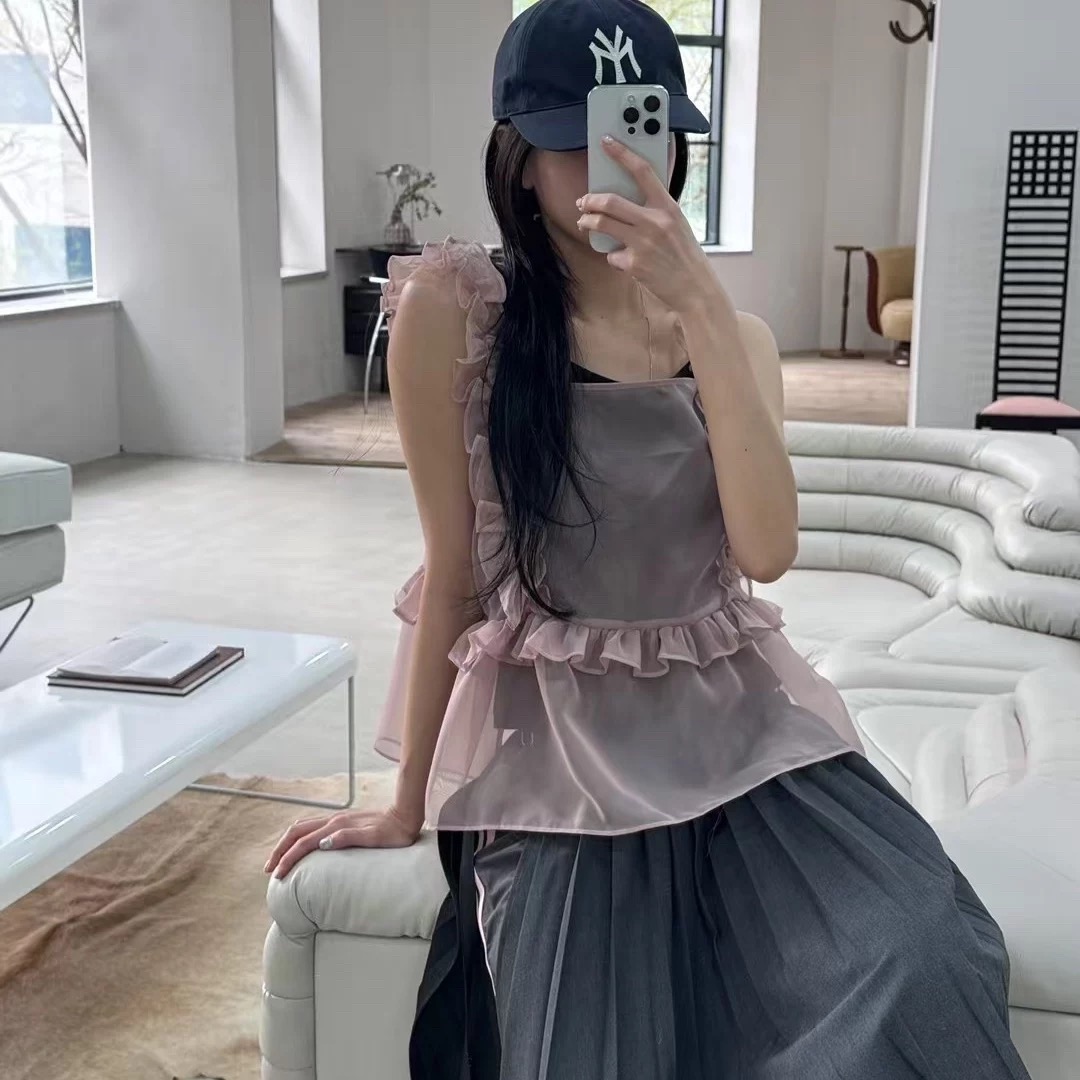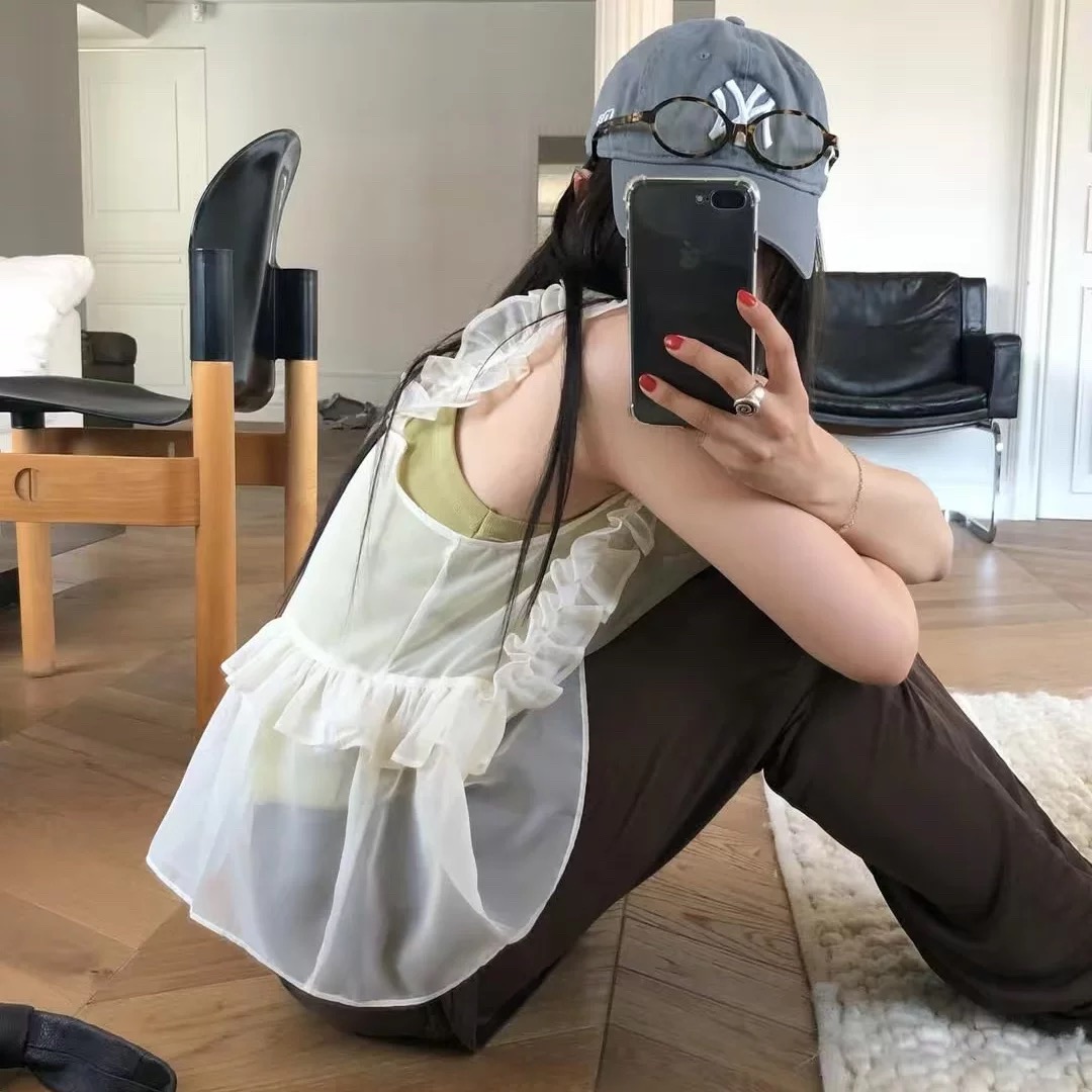 실사 홀로우 아웃 자수 레이스 자수 베스트 조끼 여성 여름 슬림해 보이는 민소매 작은 셔츠 맨위
