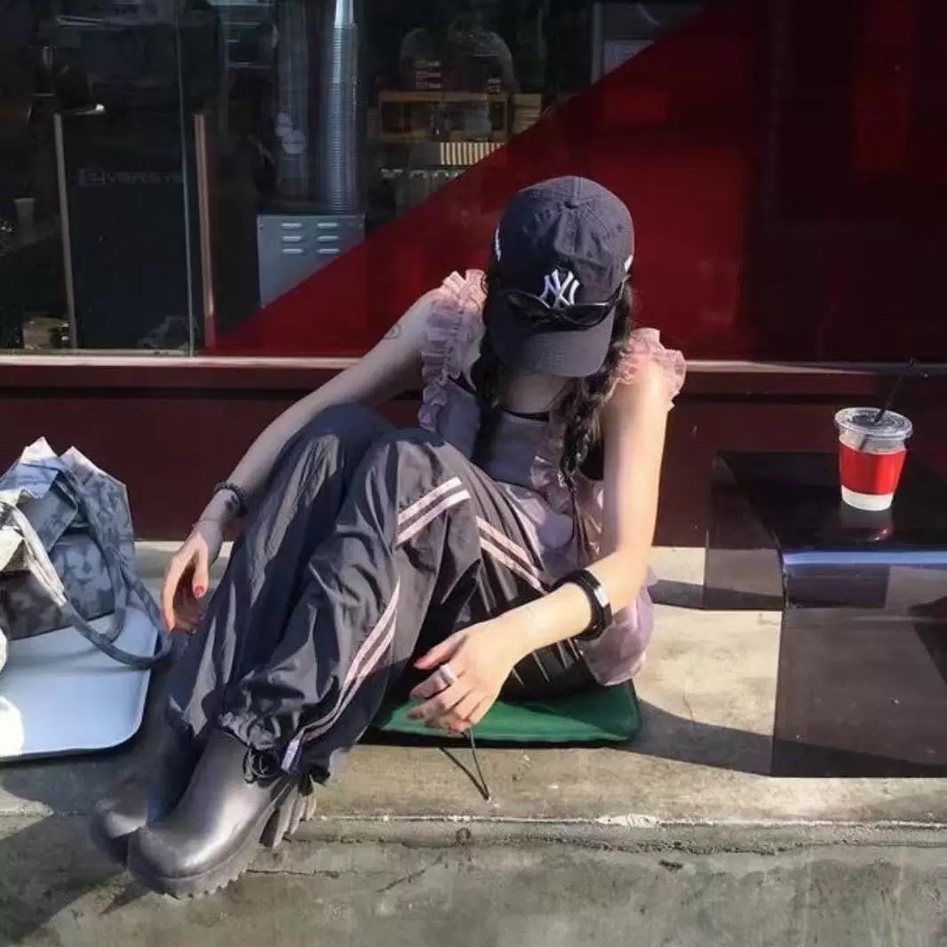 검정색 모통이 칼 청바지 여성 새로운 불모지 바람 레트로 스타일 패치워크 핫걸 거리 디자인 센스 와이드 레그 팬츠 어린이