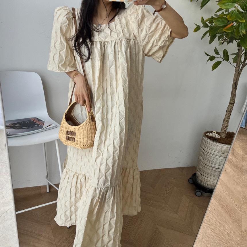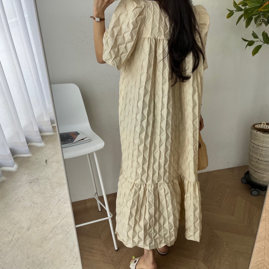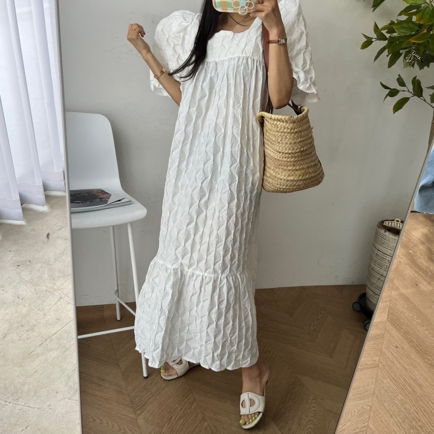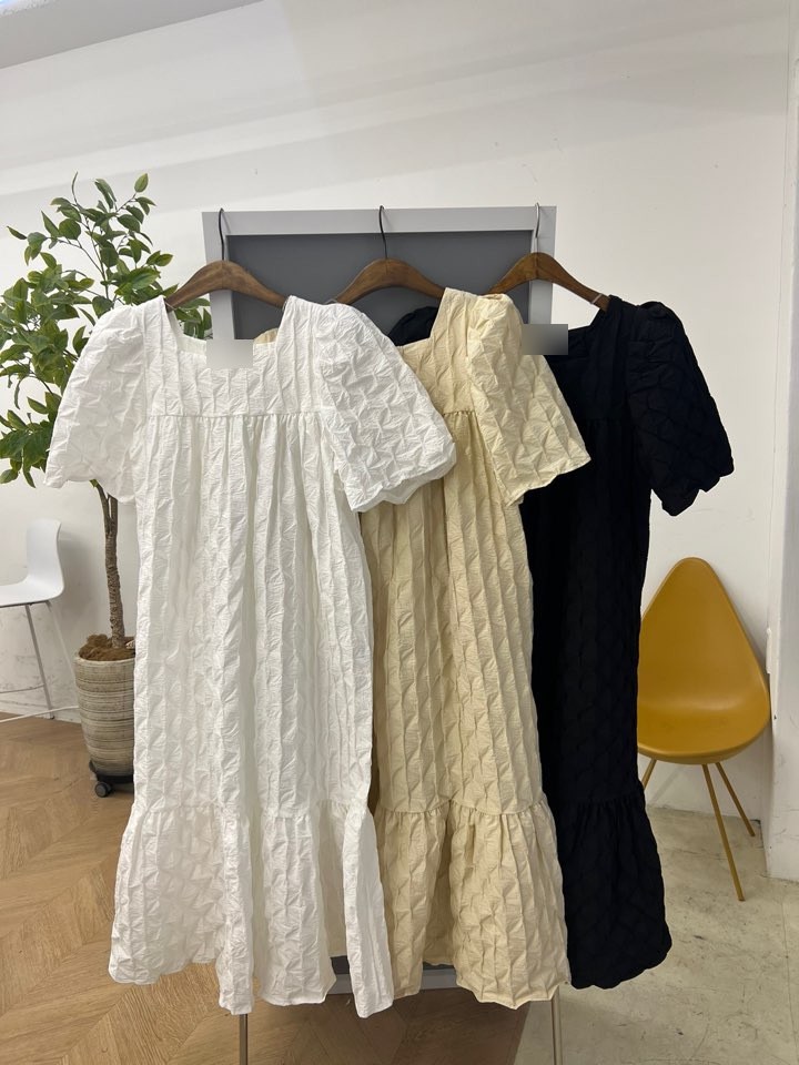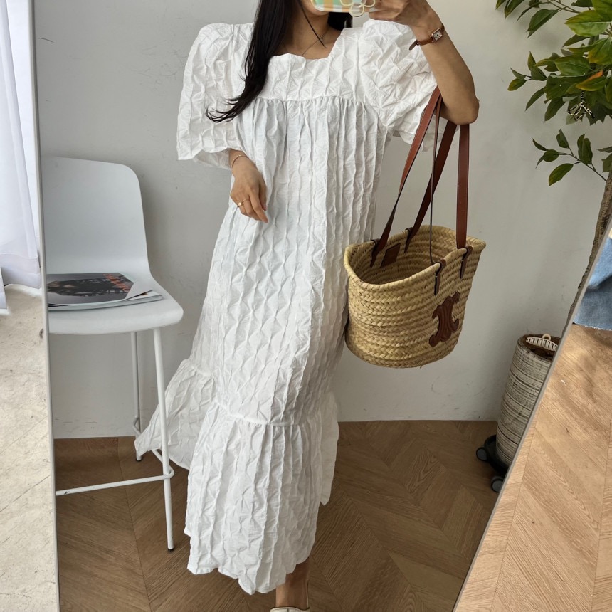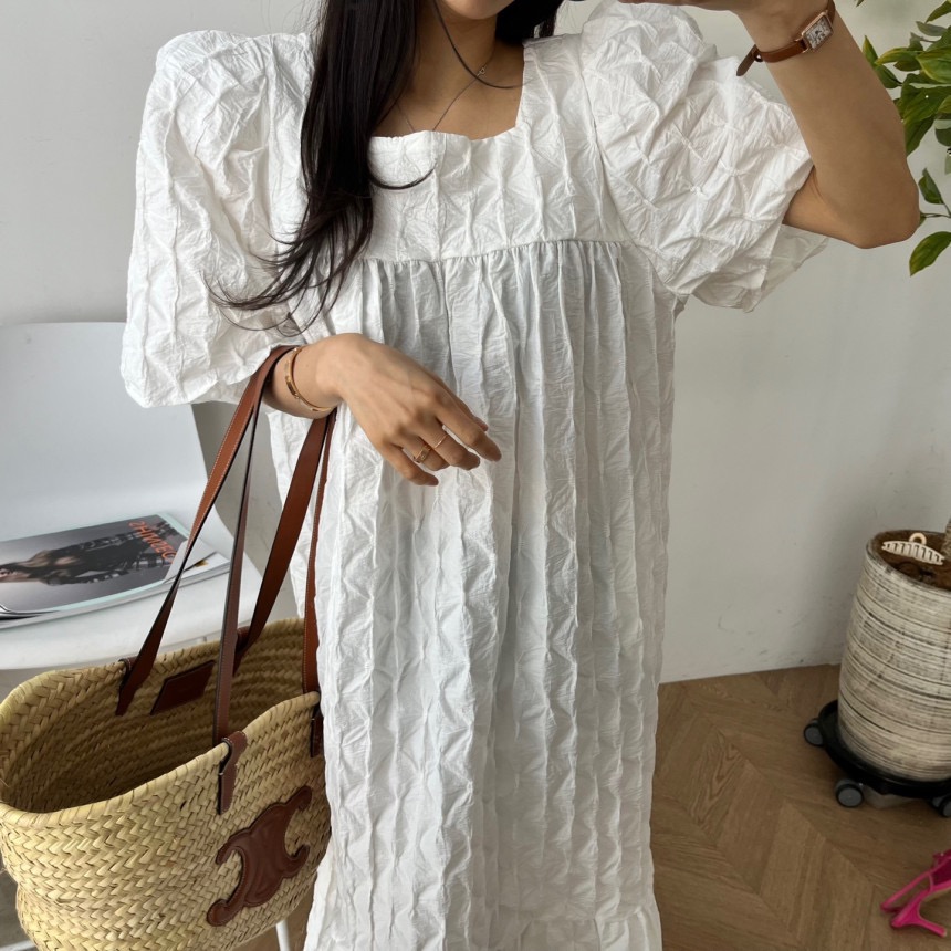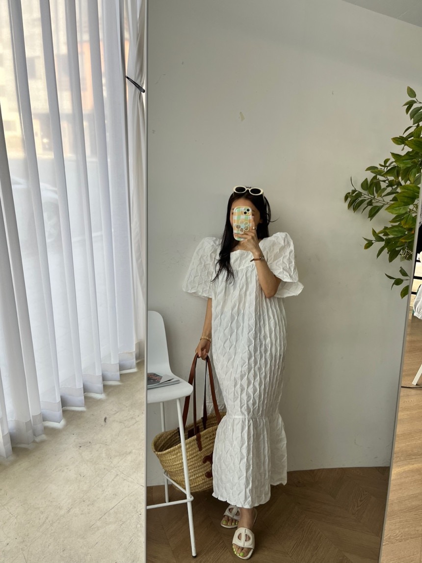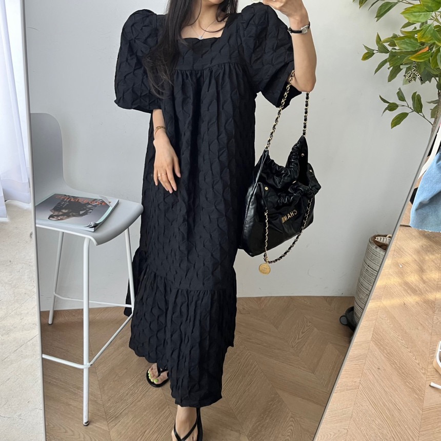 재고 있음 chic 3 차원 다이아몬드 모양 거품 소매 드레스