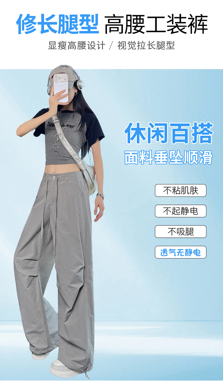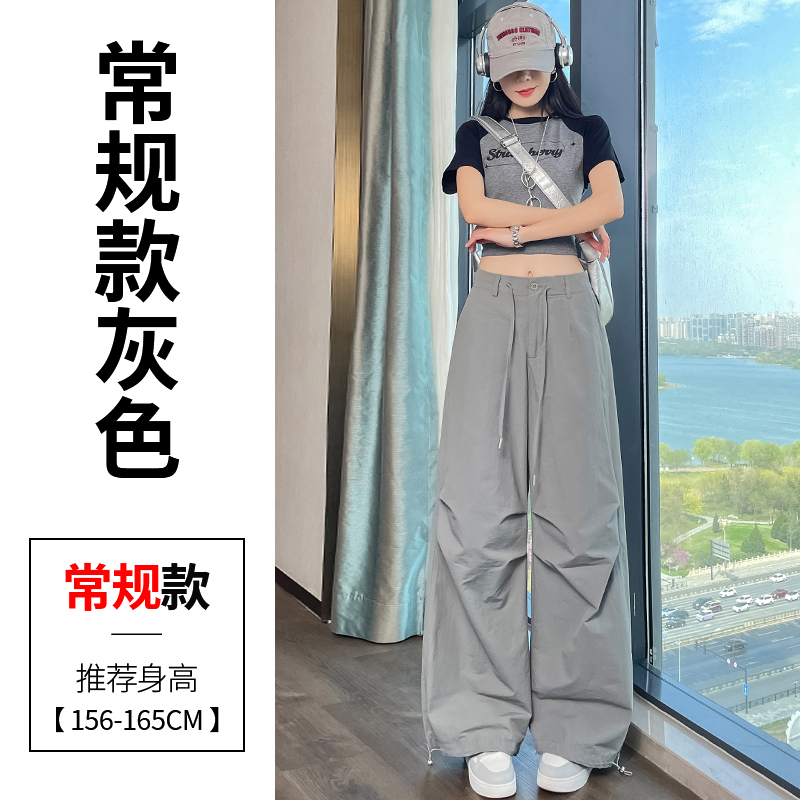 실사 2026 여름 새로운 얼음 실크 속도 건조한 아메리칸 워크웨어 팬츠 여성 얇은 스타일 조거 넓은 다리 캐주얼 바지 운동 바지