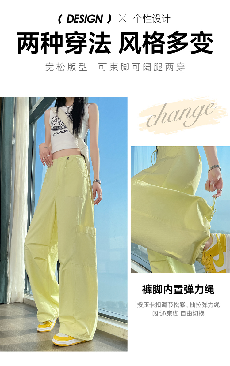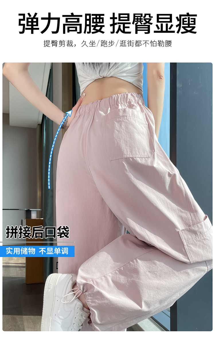 실사 2026 여름 새로운 속도 건조한 바지 워크웨어 팬츠 여성 얇은 스타일 하이웨이스트 조거 넓은 다리 둘 착용 할란 운동 바지