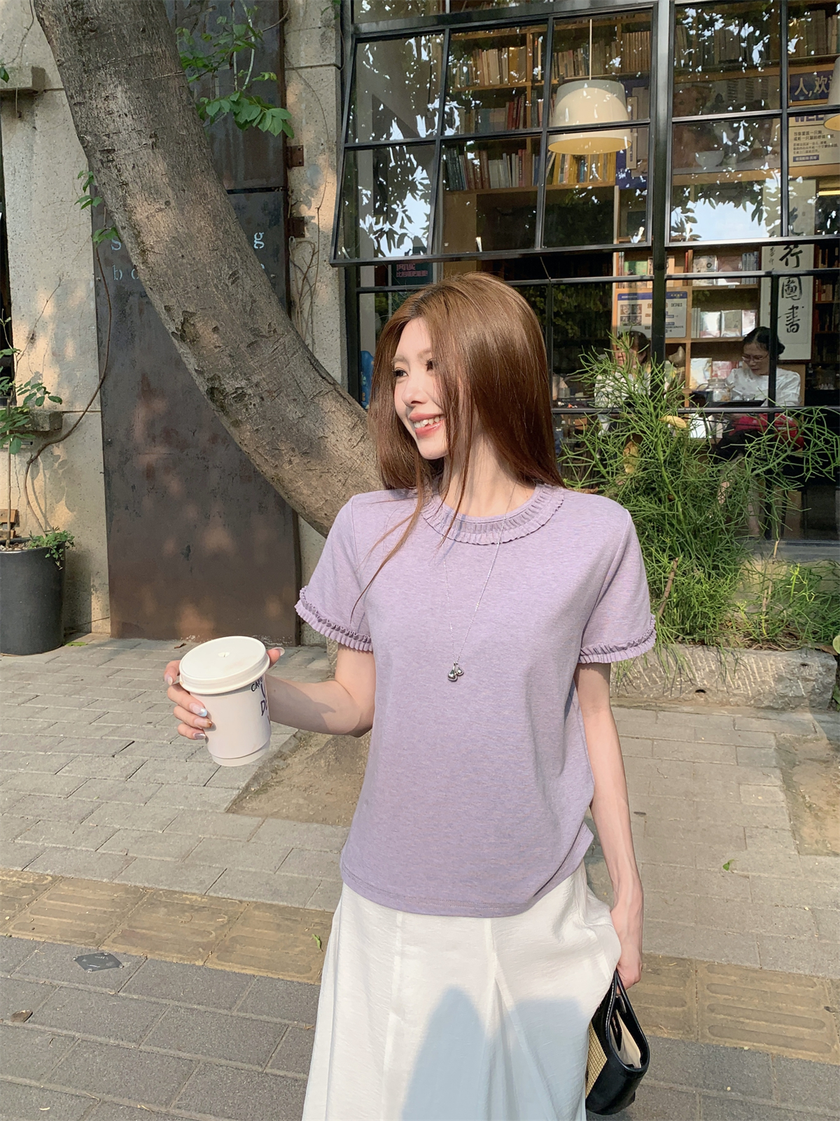 실사 정가 여름 한국 스타일 달콤함 연령 감소 라운드 넥 레이스 디자인 센스 루즈핏 다용도 반팔 티셔츠 맨위 여성