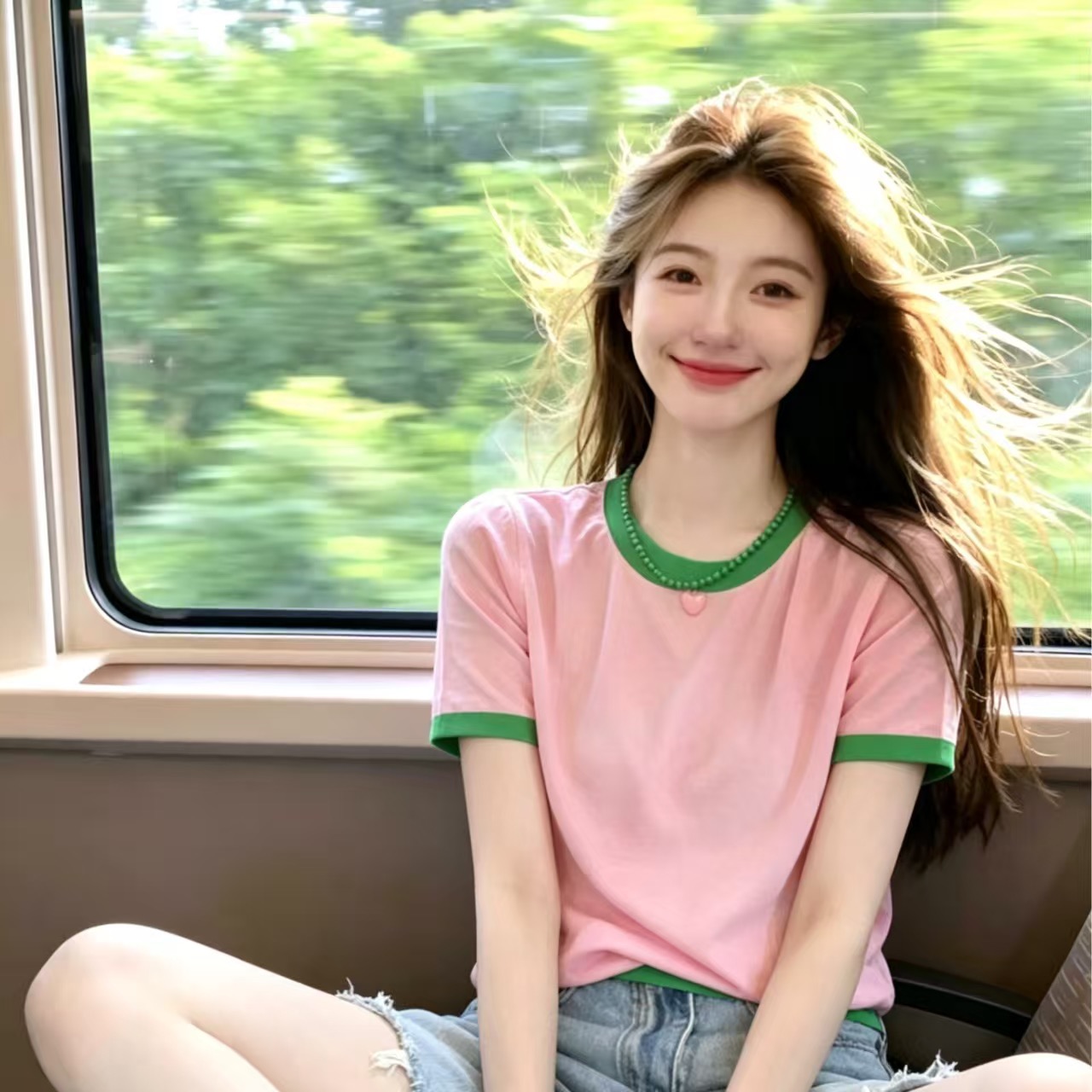자이언트 잘 생긴 배색 라운드 넥 반팔 티셔츠 여성 2026 새로운 여름 디자인 센스 고유 한 아름다운 연령 감소 섹션 맨위