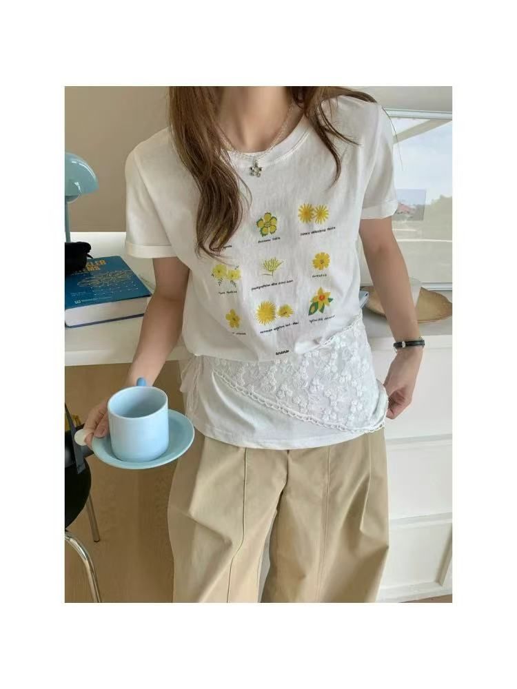 얇은 스타일 반팔 티셔츠 한 부서 느슨함 센스 V넥 여름 루즈핏 순수한 욕망 chic 맨위 여성 의류