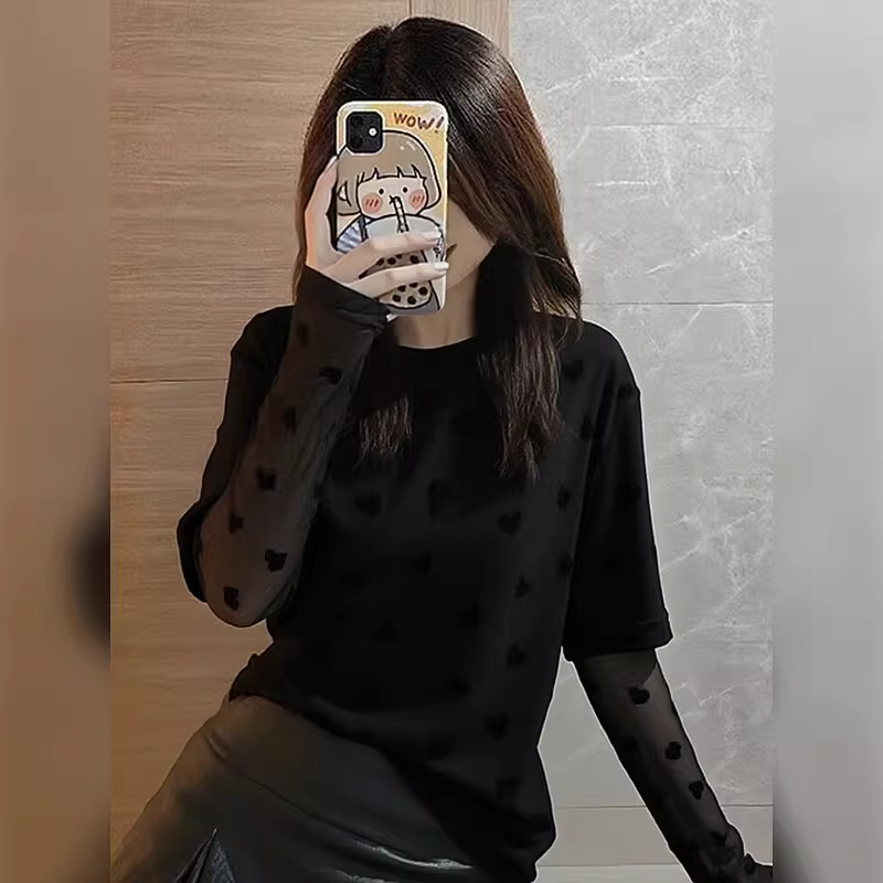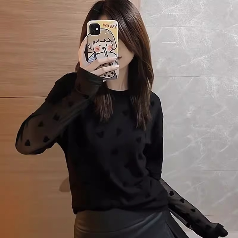 꽃 검정색 긴팔 티셔츠 여성 2026 새로운 봄 가을 폴로 칼라 몸매 가꾸기 수 있습니다. 외출용 인사이드 가져 가라. 만나는 맨위 트렌디