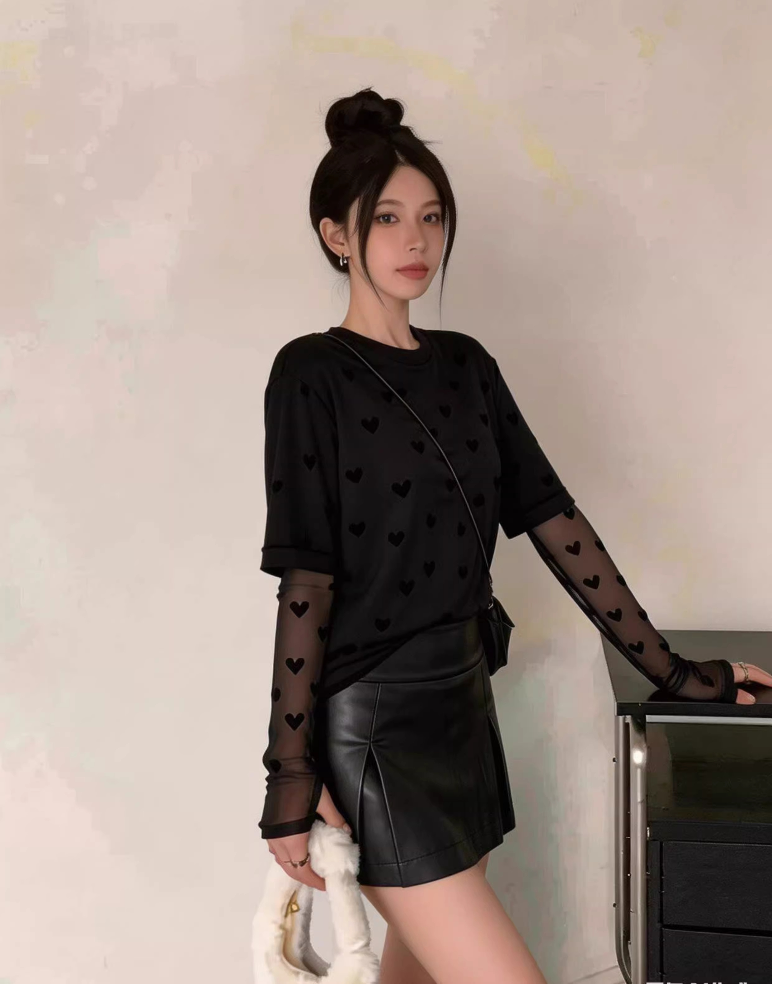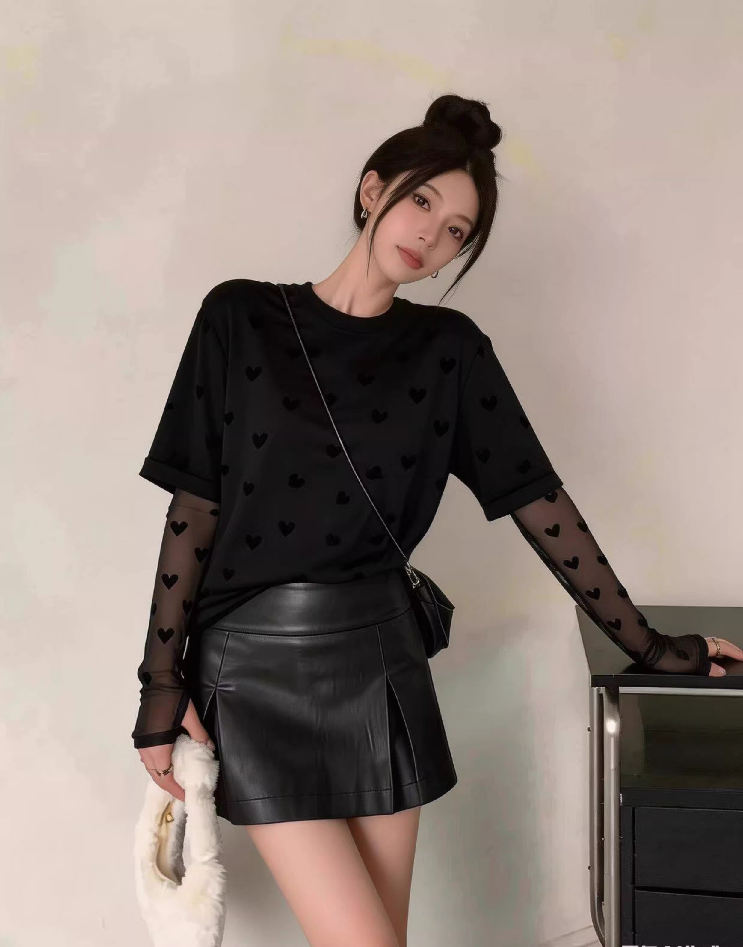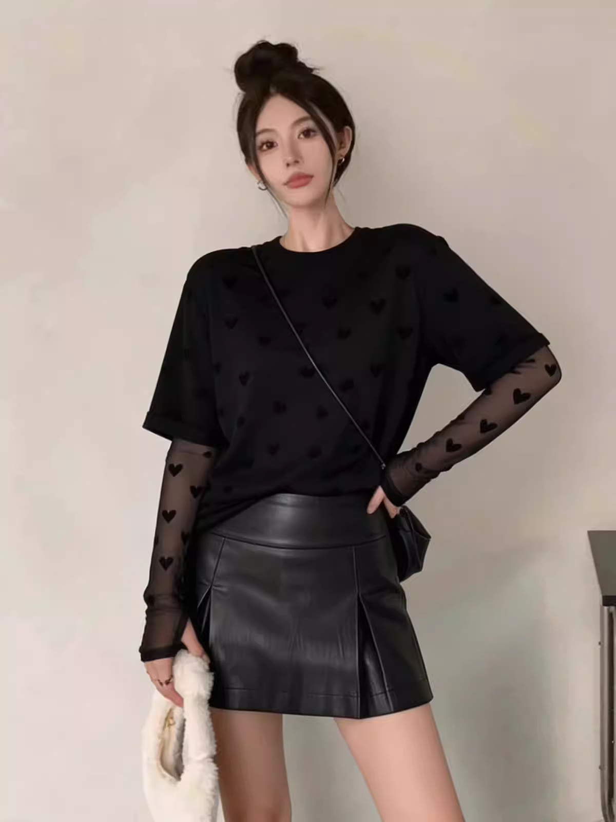 40 차가운 실크 차가운 면 1 1 리브 식물 플러시 빅 사이즈 여성 2026 새로운 봄 페이크 레이어드 슬림해 보이는 맨위