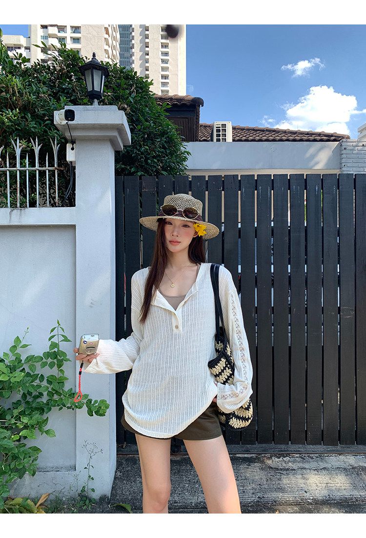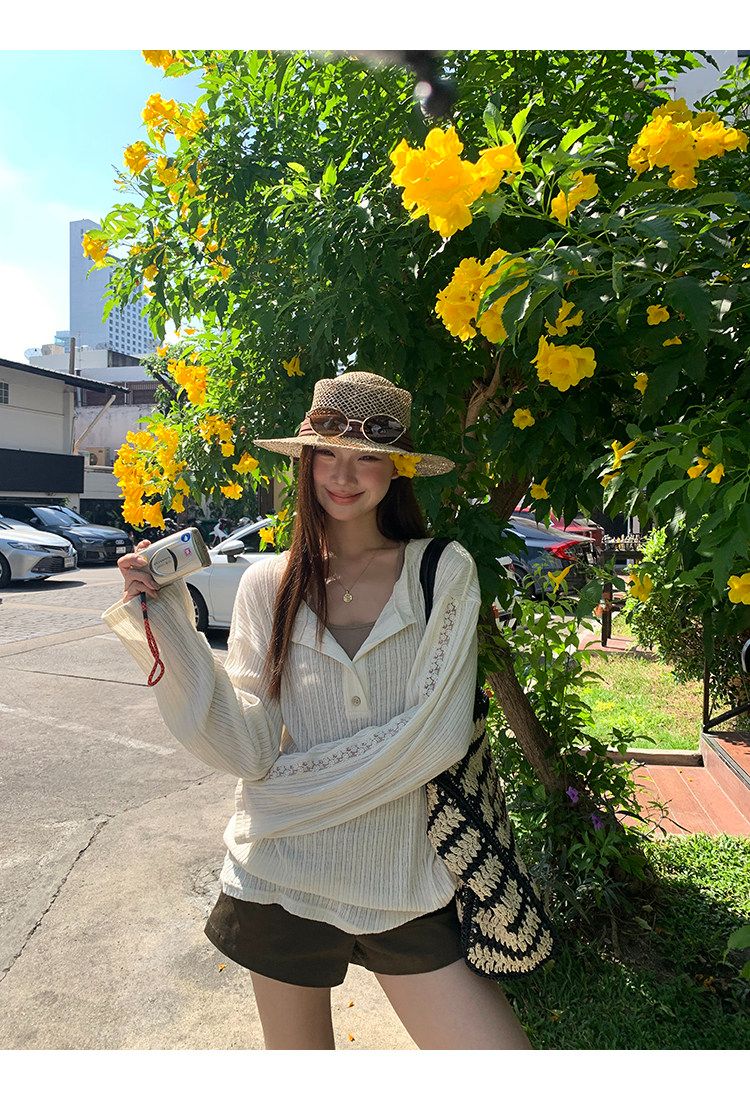 원본 자카드 원단 자외선 차단 블라우스 여성 여름 긴팔 티셔츠 한 부서 작은 대중 디자인 센스 맨위 여성