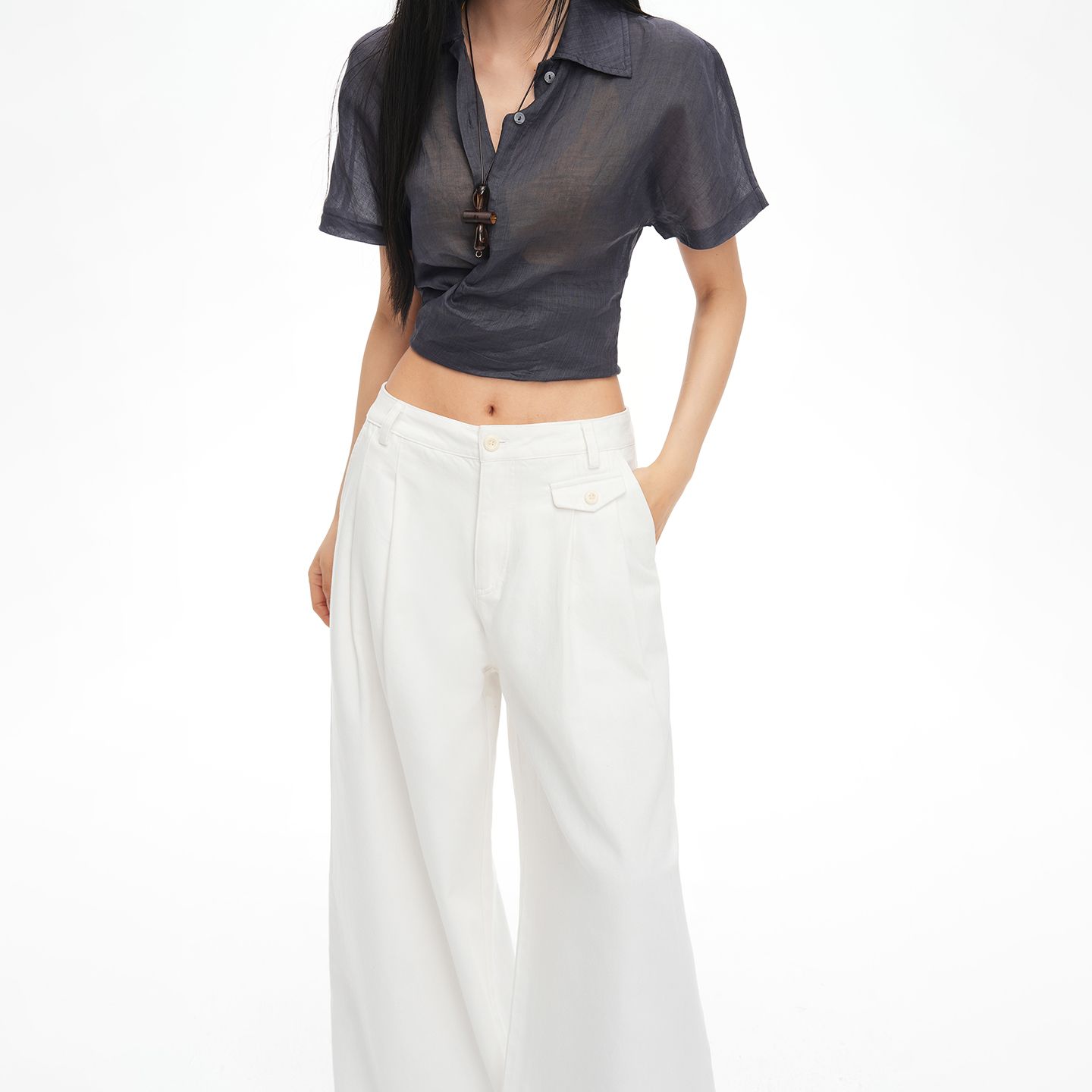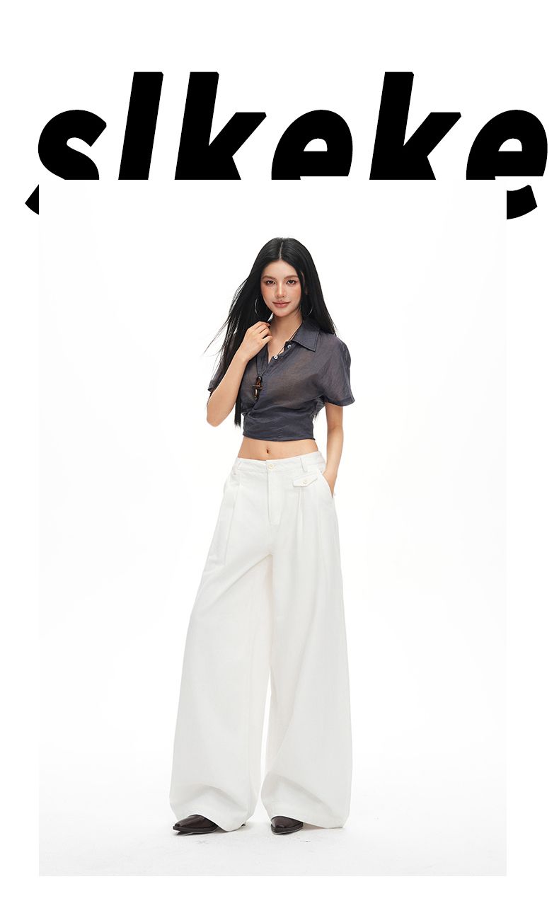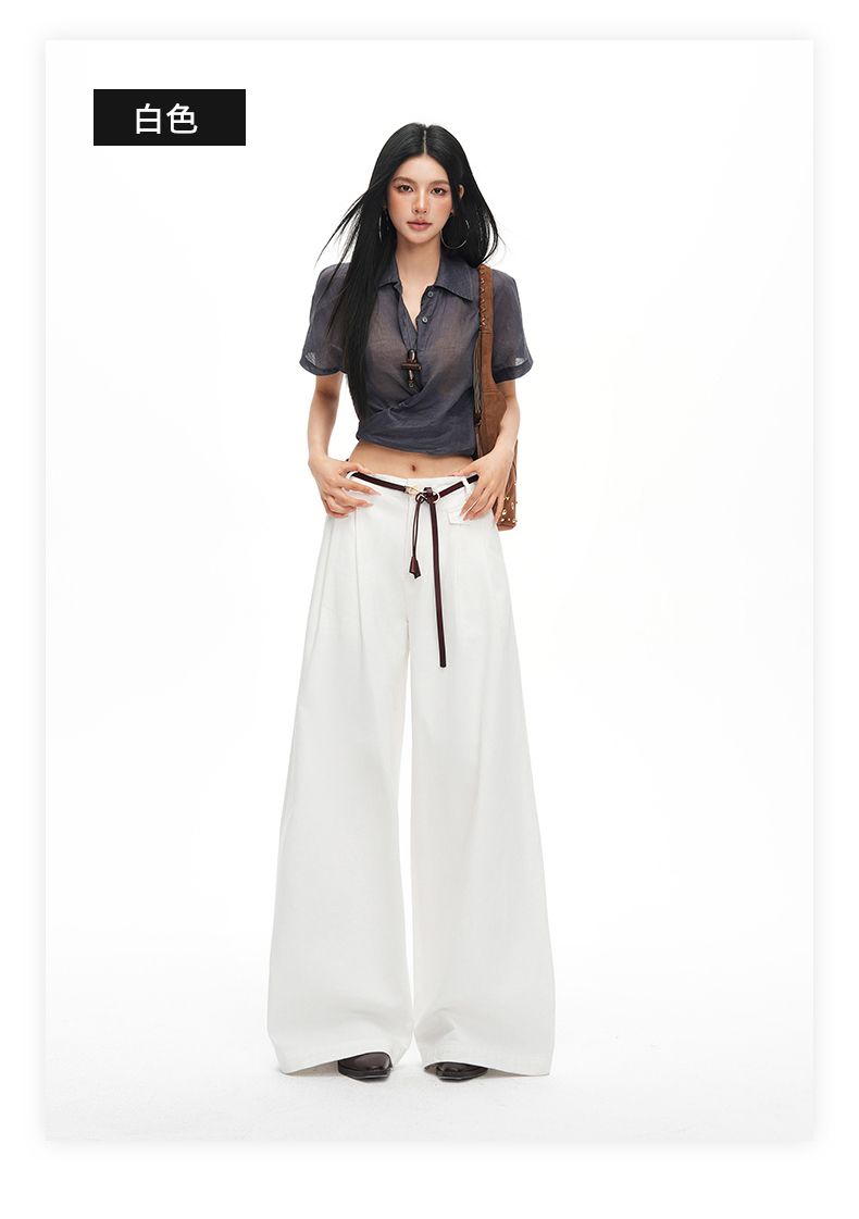 신제품 2026 여름 아메리칸 레트로 로우 웨이스트 작은 레이스 패치워크 넓은 다리 스트레이트 캐주얼 바지