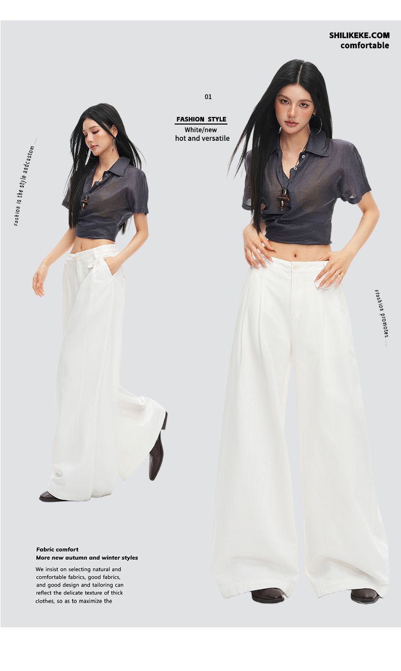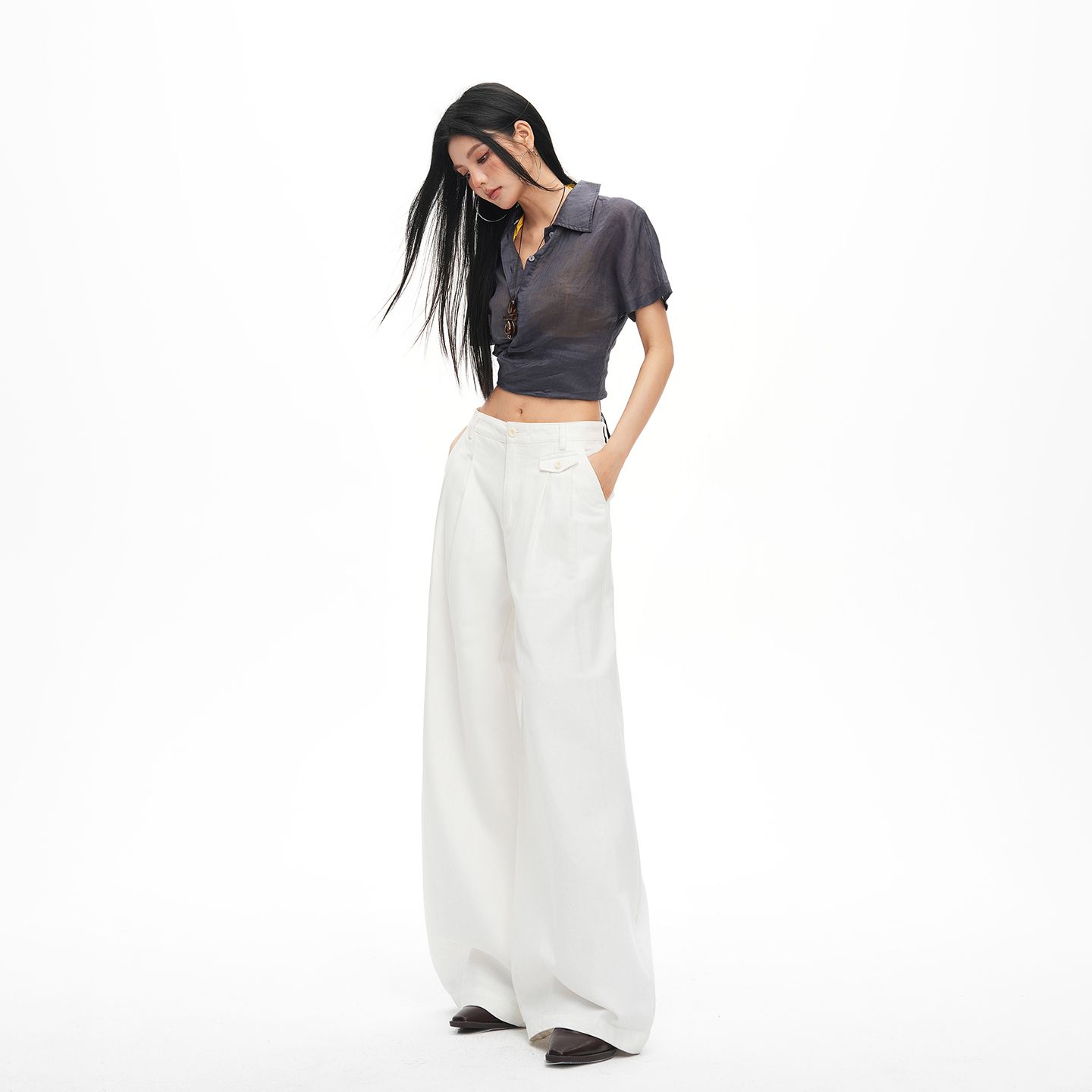 26 년 봄 여름 새로운 아메리칸 레트로 핫걸 중 하이웨이스트 슬림해 보이는 루즈핏 스트레이트 와이드 레그 팬츠 아이들