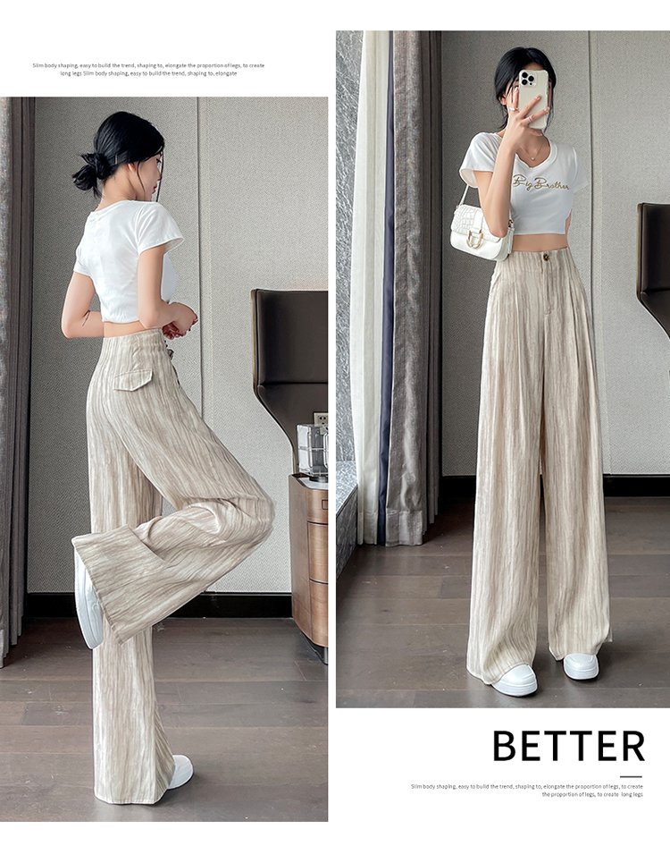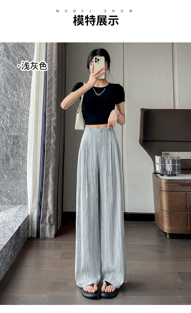 실사 2026 여름 새로운 얼음 실크 정장 바지 하이웨이스트 좁은 에디션 와이드 레그 팬츠 스트레이트 얇은 스타일 캐주얼 바닥 청소 바지 여성