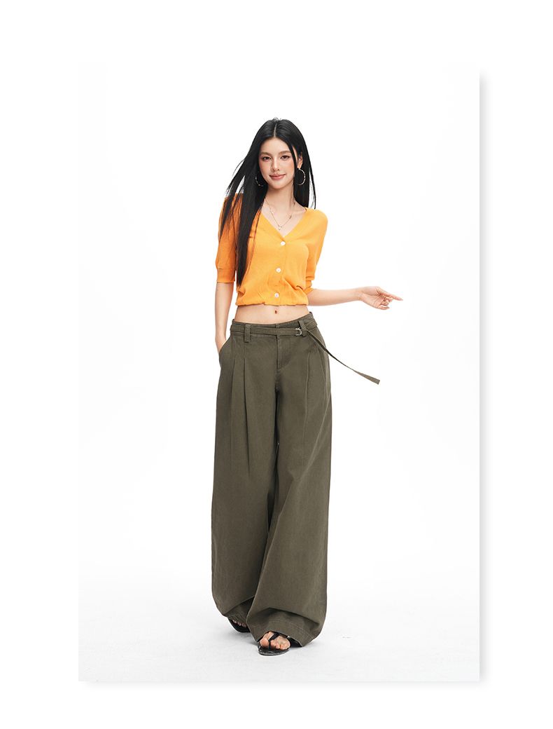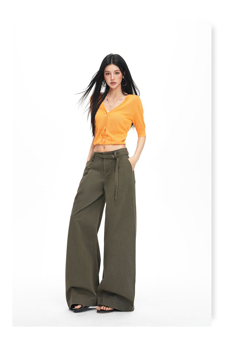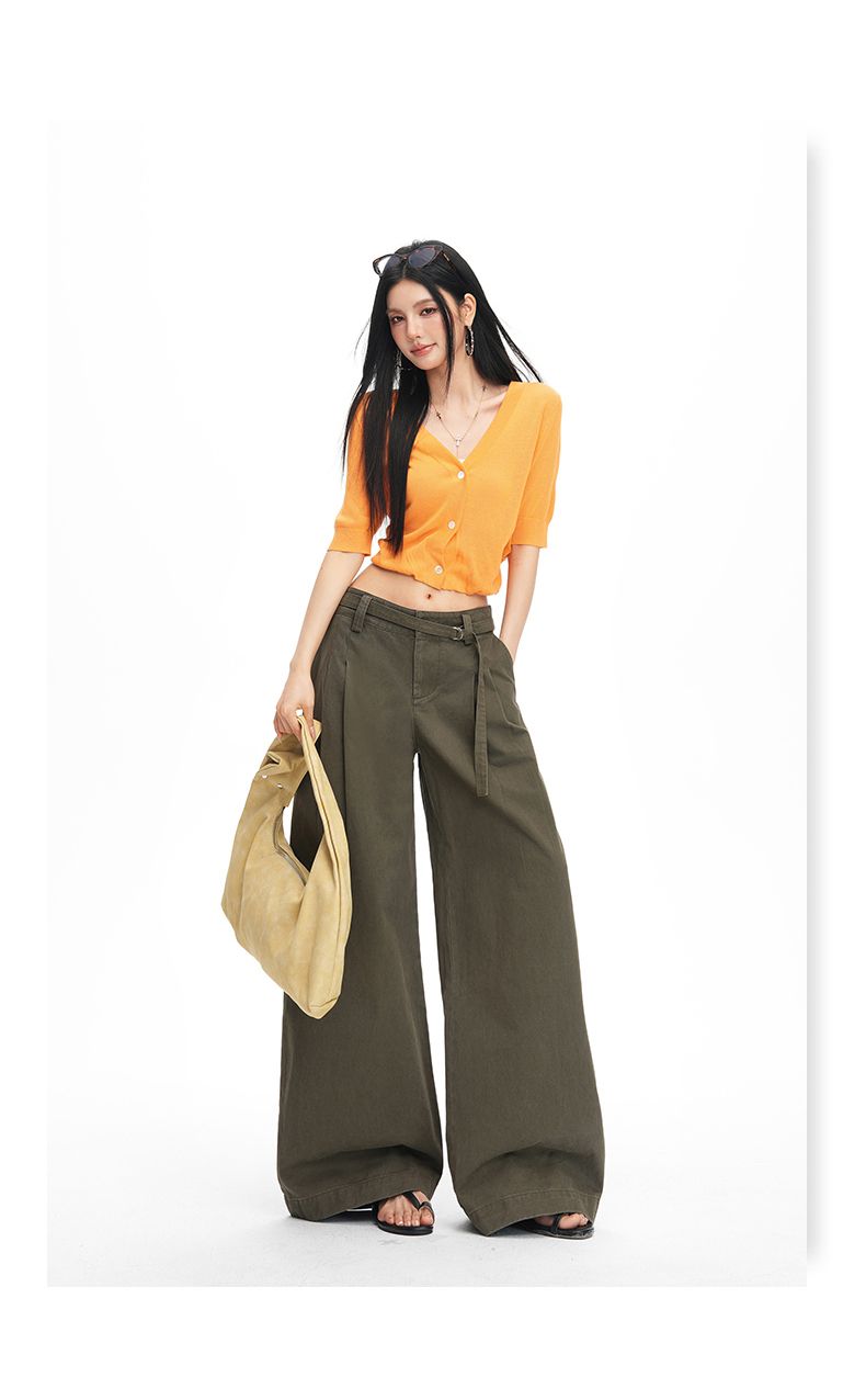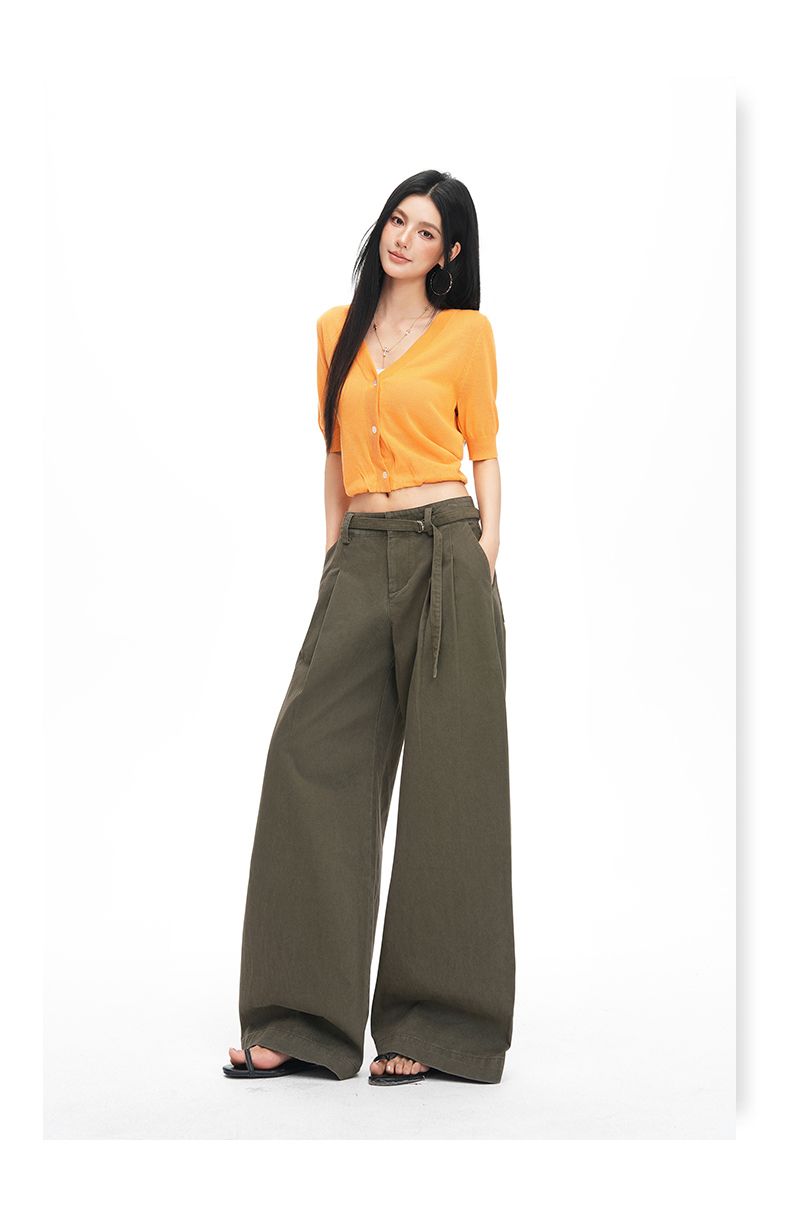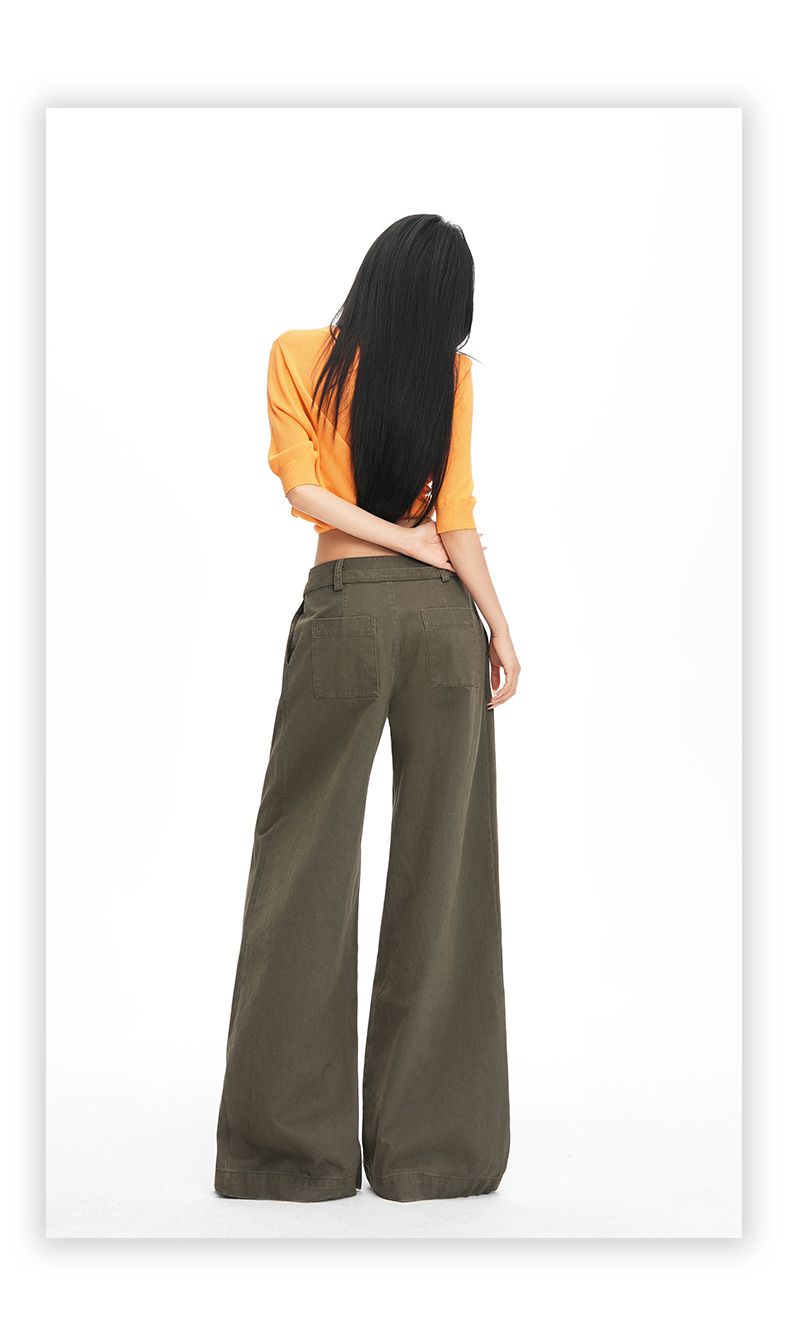 26 년 봄 여름 새로운 아메리칸 레트로 핫걸 중 하이웨이스트 슬림해 보이는 루즈핏 스트레이트 와이드 레그 팬츠 아이들