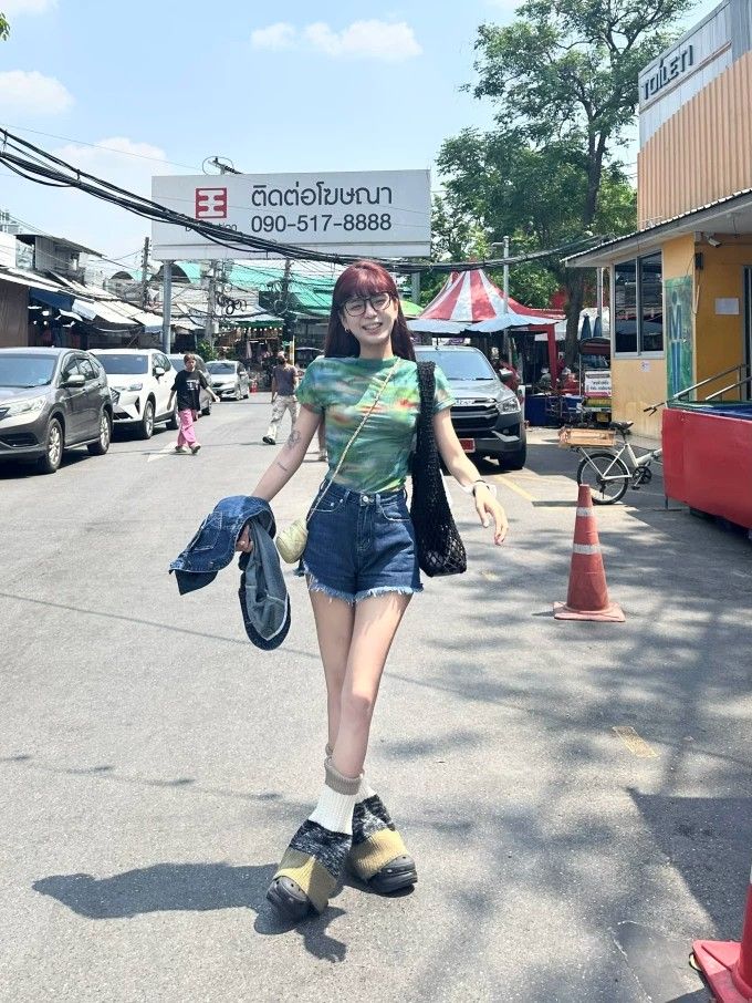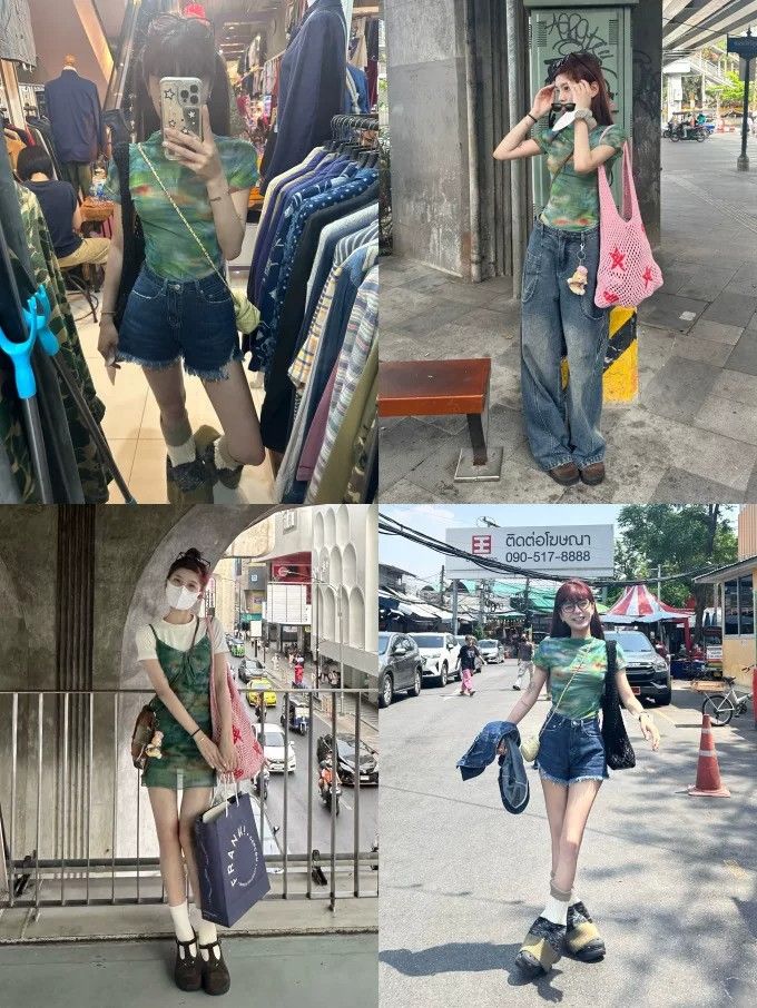 원본 원단 fcheer 녹색 잡초와 함께 자란 루 체 꽃 녹색 프린트 망사 반팔 티셔츠 여성 몸매 가꾸기 쇼트 스타일 핫걸