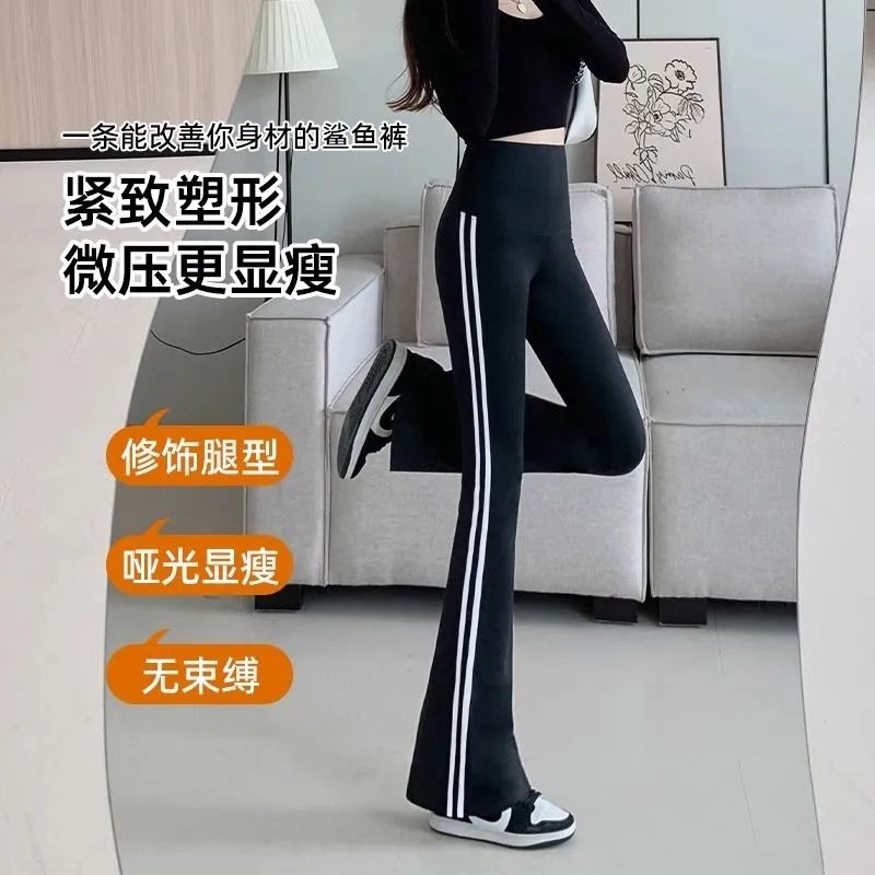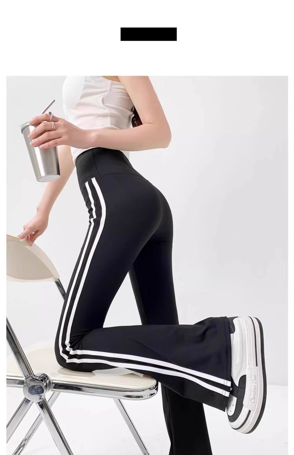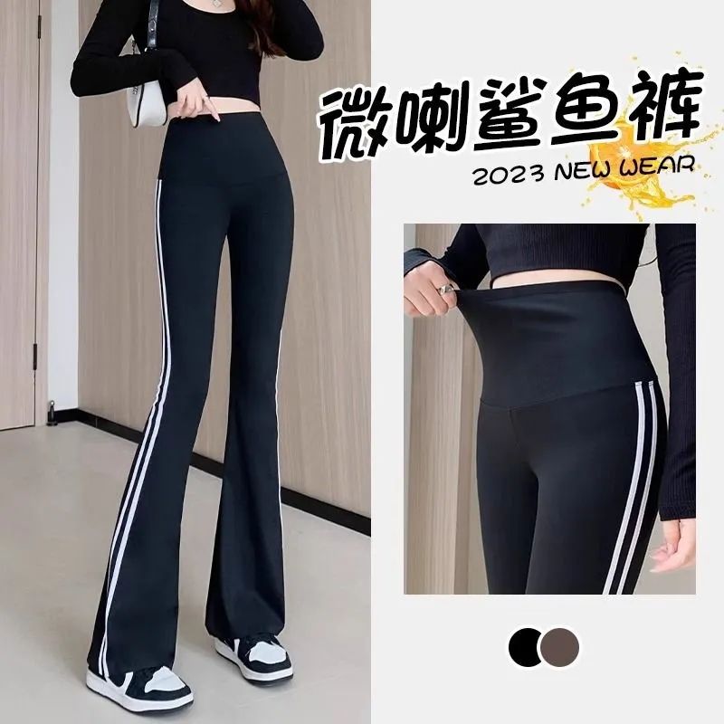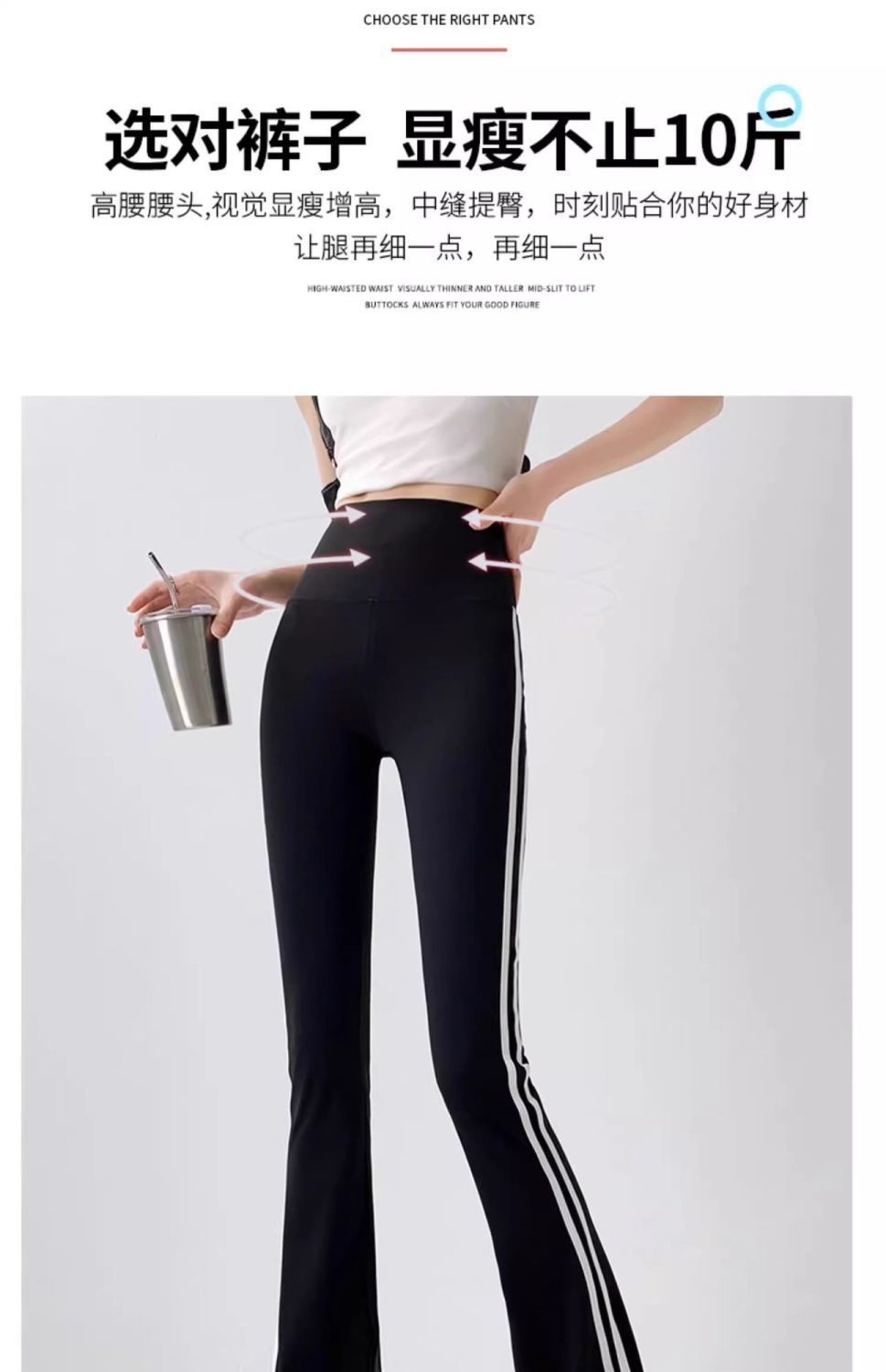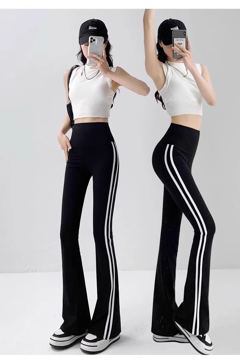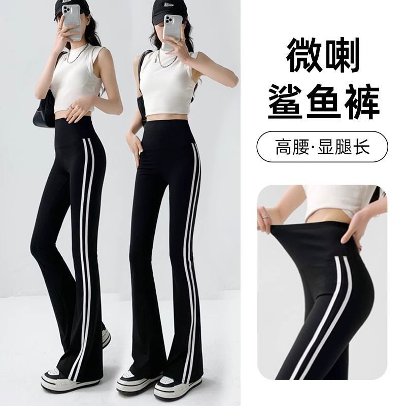 측면 스트라이프 부츠컷 요가 바지 여성 외출용 봄 가을 얇은 스타일 운동 피트니스 하이웨이스트 핫걸 상어 나팔 바지