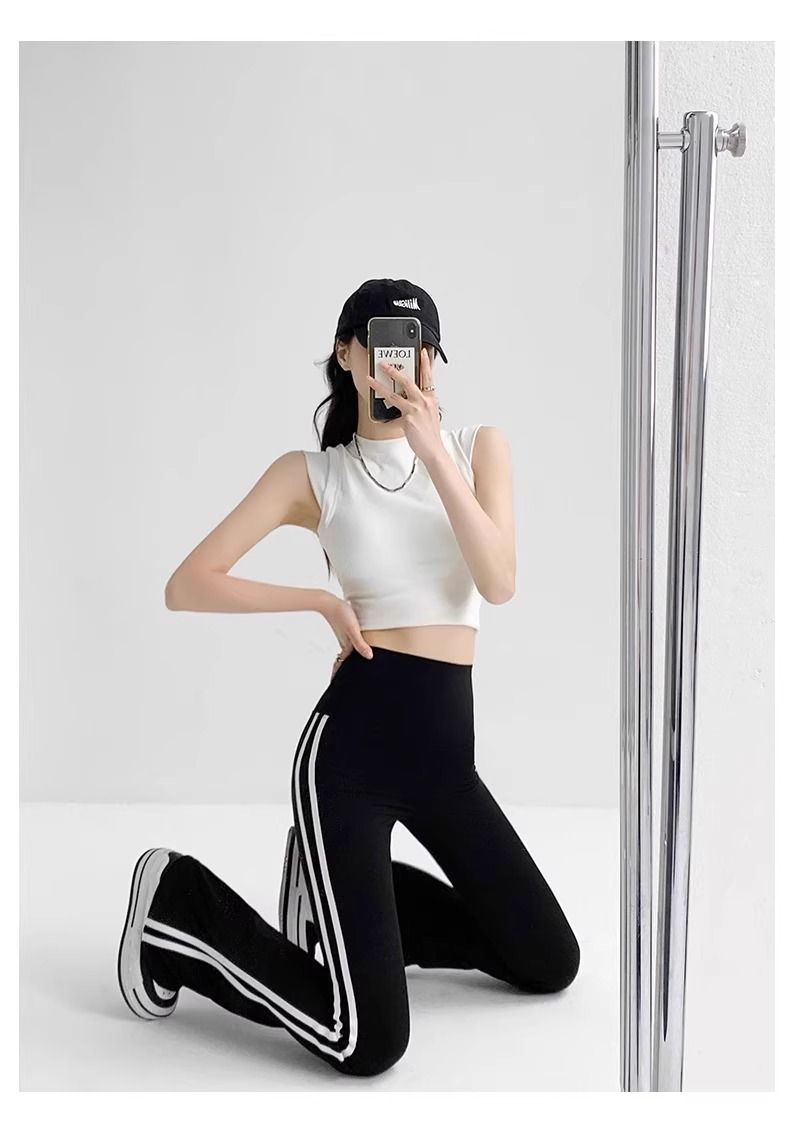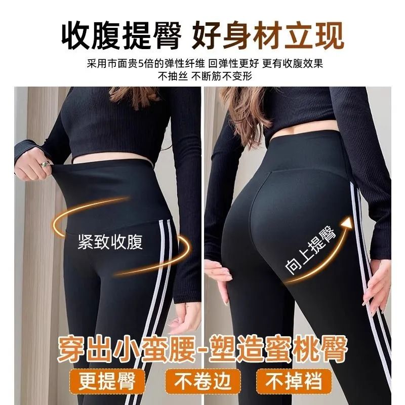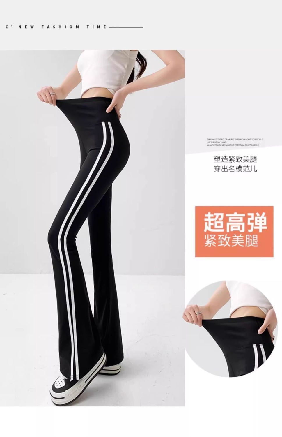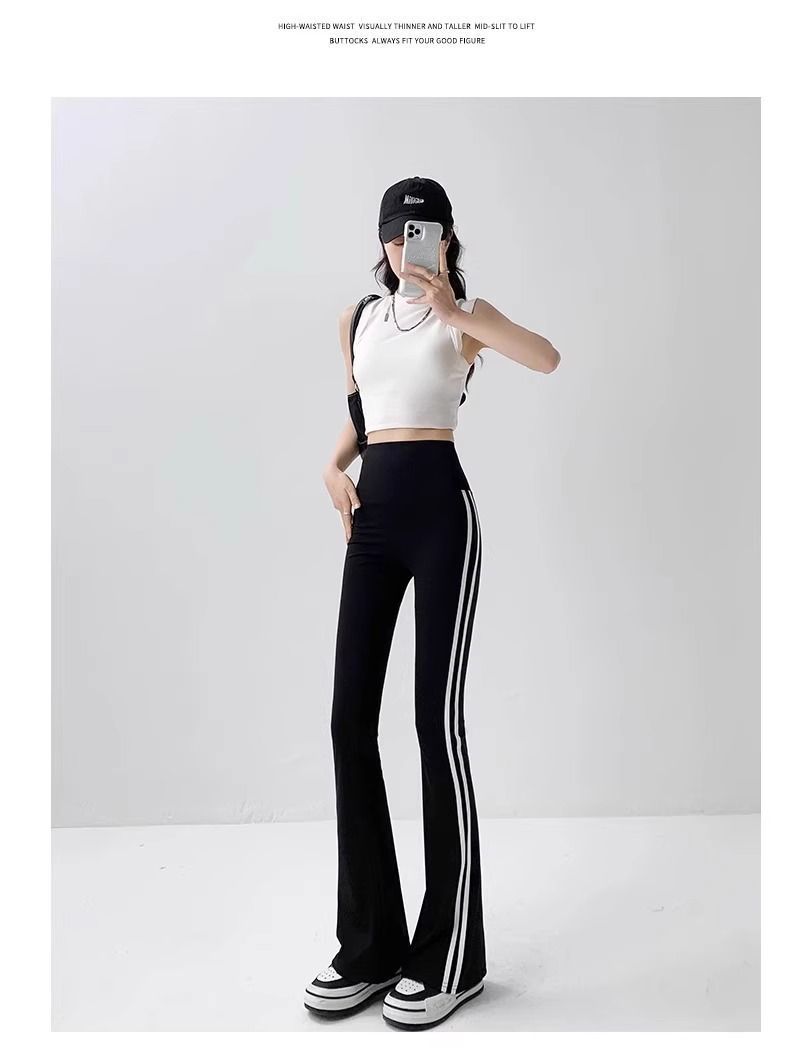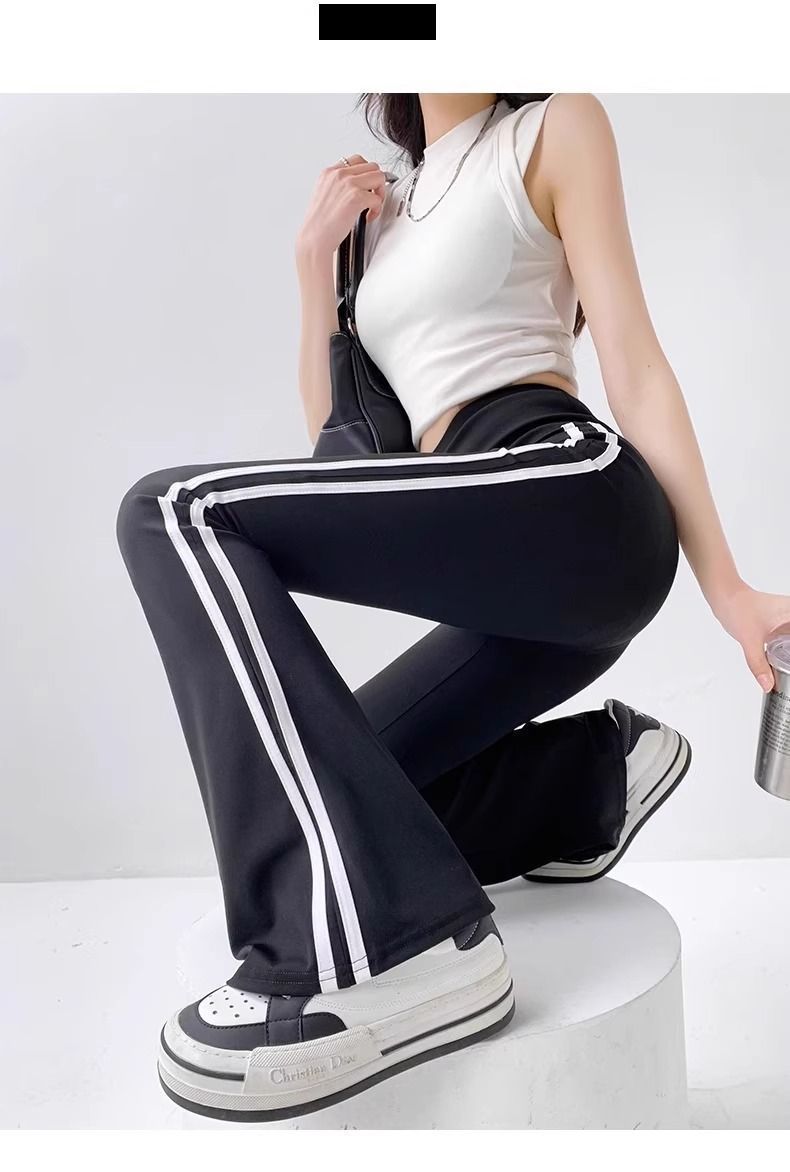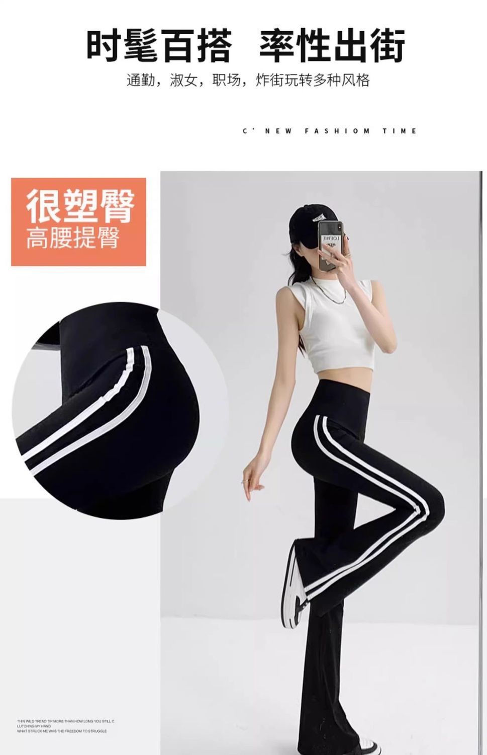 측면 스트라이프 부츠컷 요가 바지 여성 외출용 봄 가을 얇은 스타일 운동 피트니스 하이웨이스트 핫걸 상어 나팔 바지