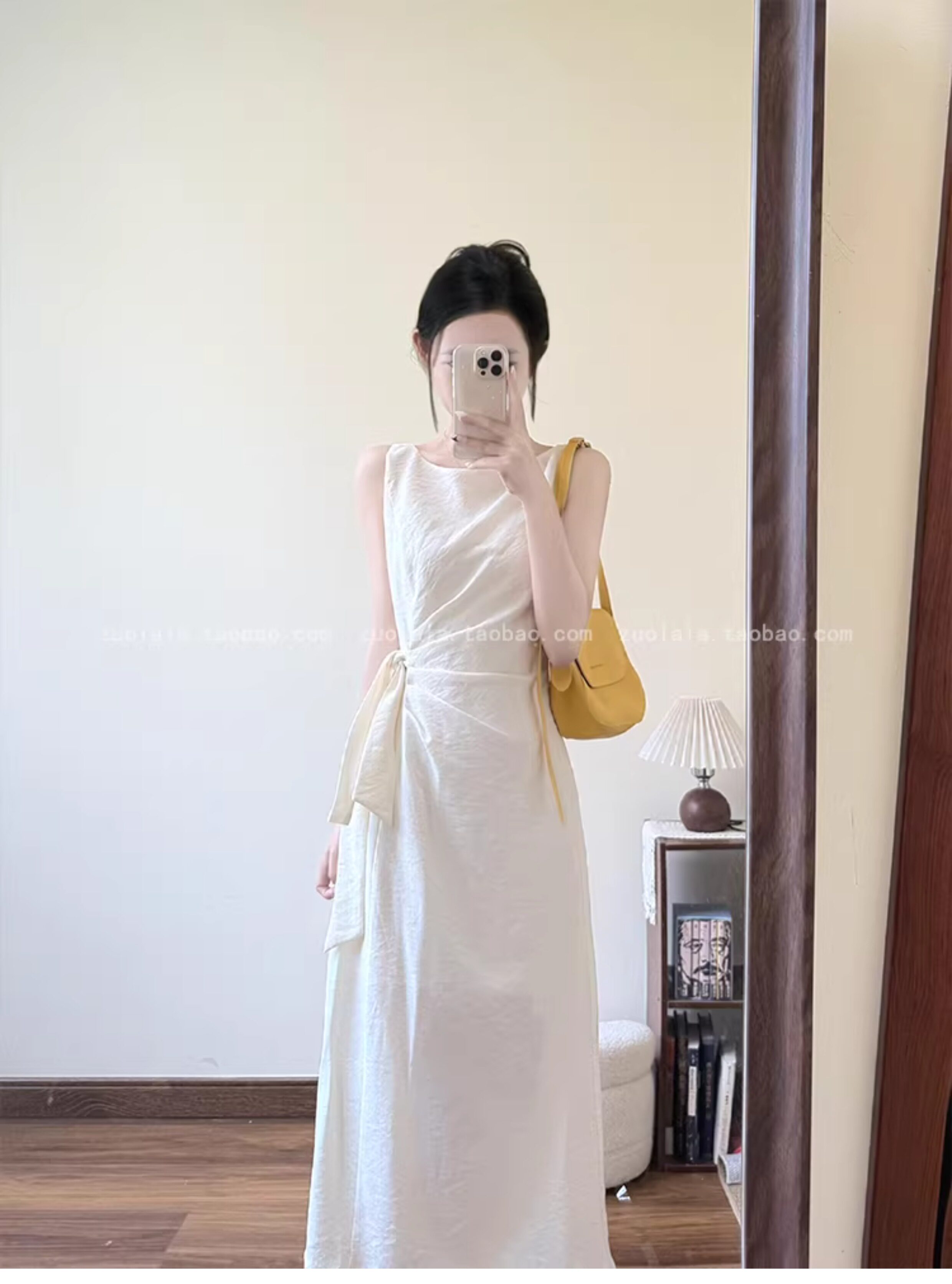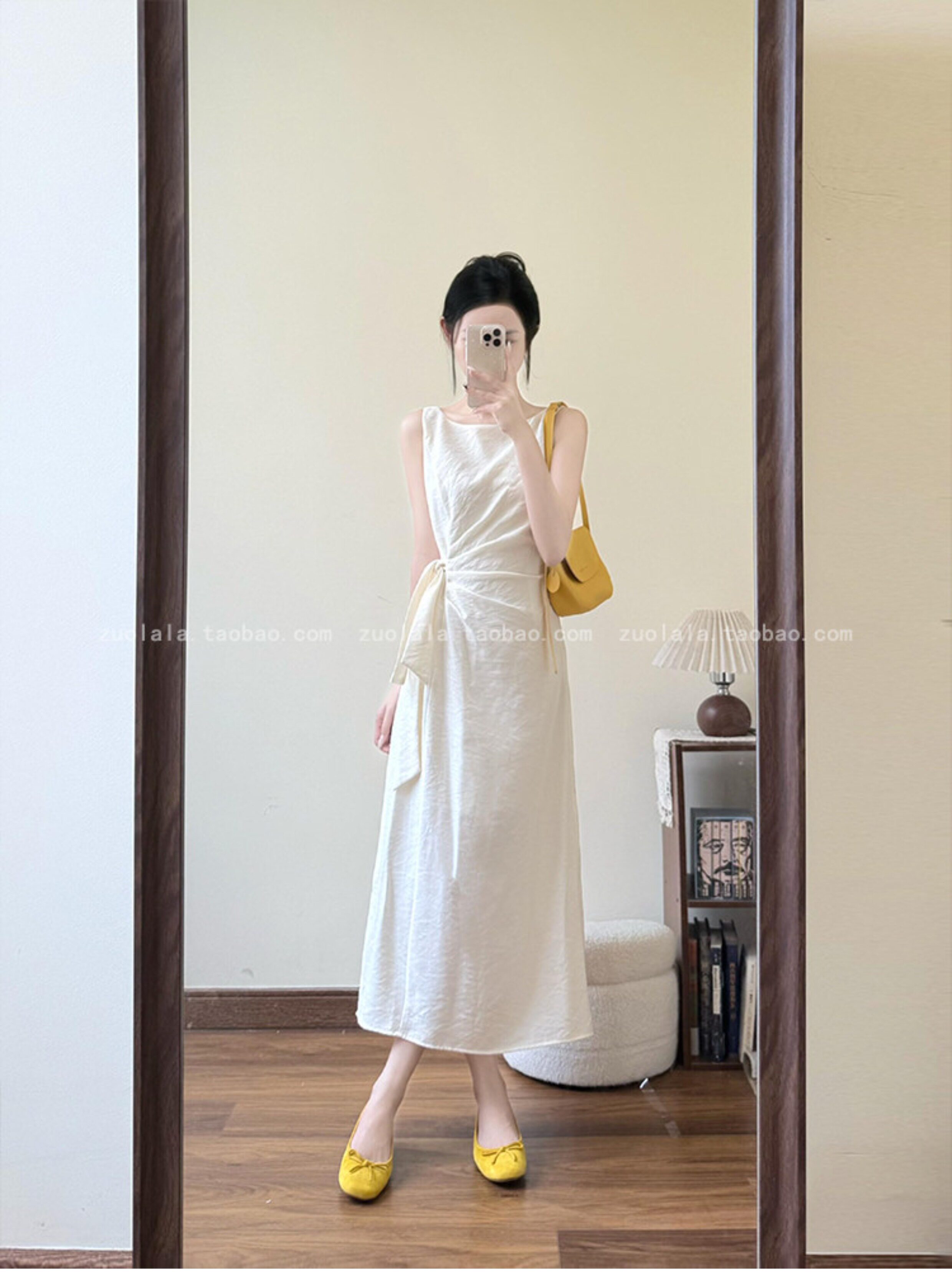 프랑스식 고유 한 품격 민소매 여성 드레스 여름 빅 사이즈 지방 mm 해변가 휴가 바람 허리 수축 슬림해 보이는 조끼 스커트