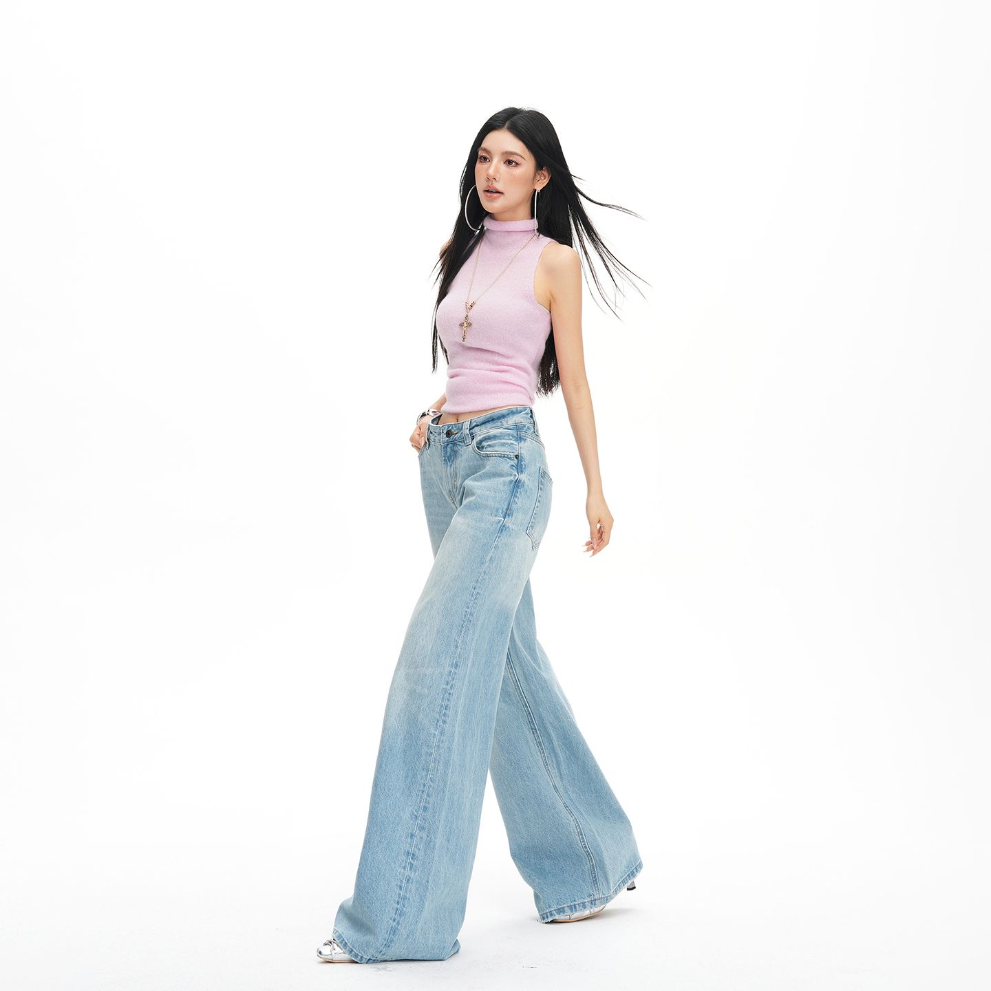 26th ootd 2026 봄 new 하늘색 워싱 고양이 반드시 면 소재 스트레이트 팬츠 정원사 데님 긴 바지 여성
